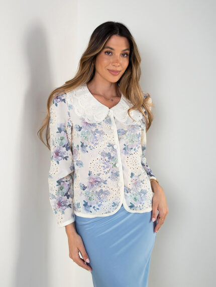 T-shirt branca de manga curta com coração bordado e pormenores de strass. T-shirt para senhora com decote redondo.