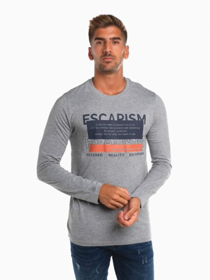 T-shirt branca de manga comprida com estampado de letras bicolores no peito. T-shirt para homem 100% algodão com gola redonda.