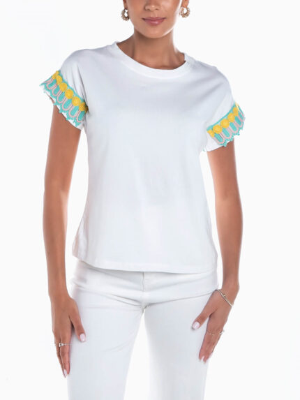Início Mulher T-shirts T-shirt branca manga curta com bordado