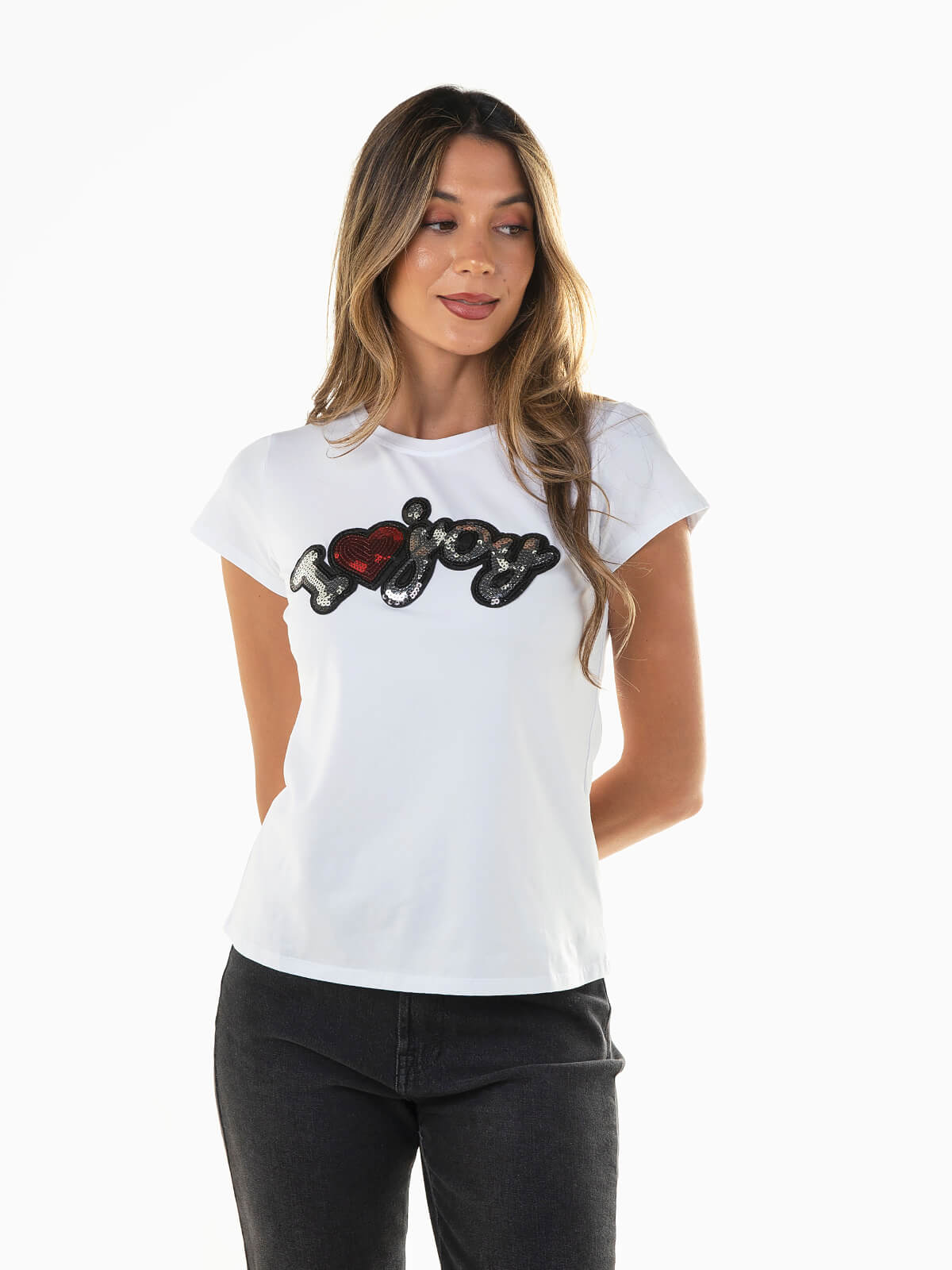Início Mulher T-shirts T-shirt branca manga curta com lantejoulas