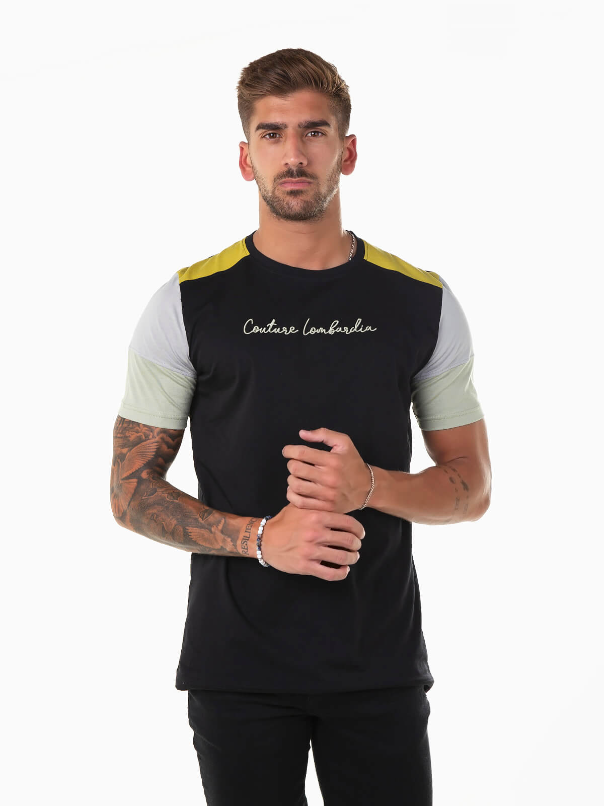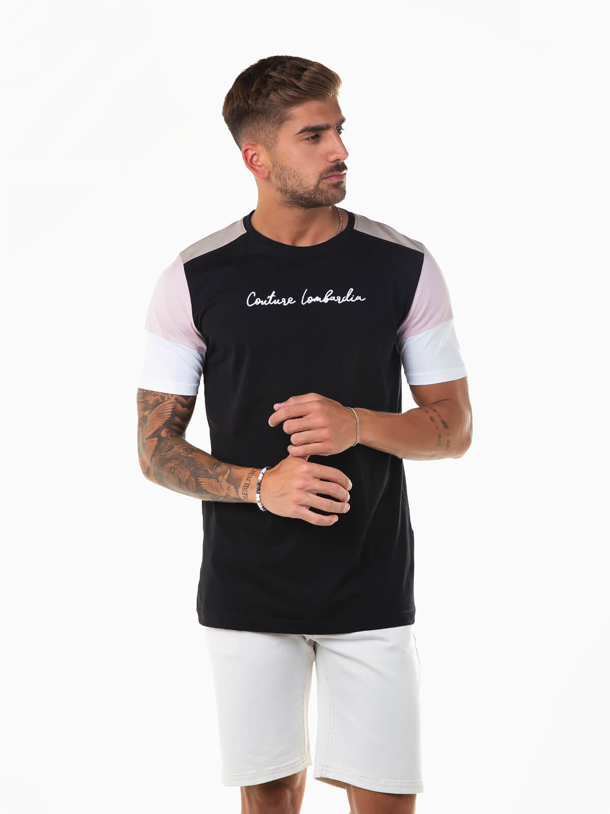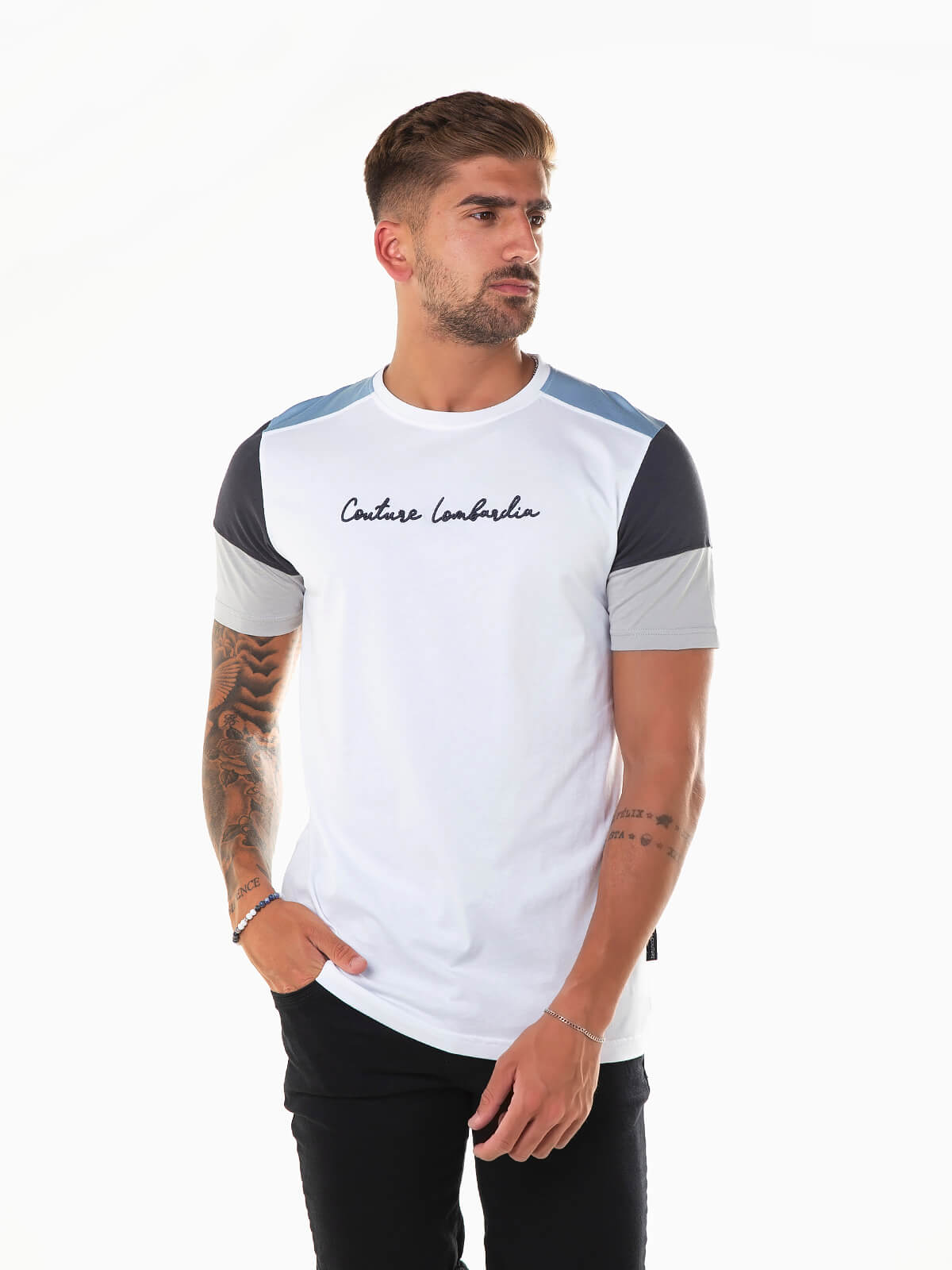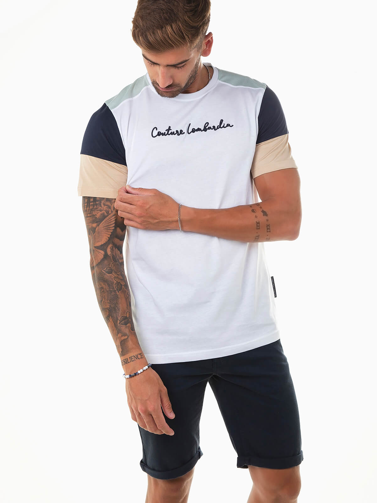 T-shirt de manga curta com estampado color block e bordado no peito. Confeccionada em tecido 100% algodão para maior conforto e durabilidade. Gola redonda.