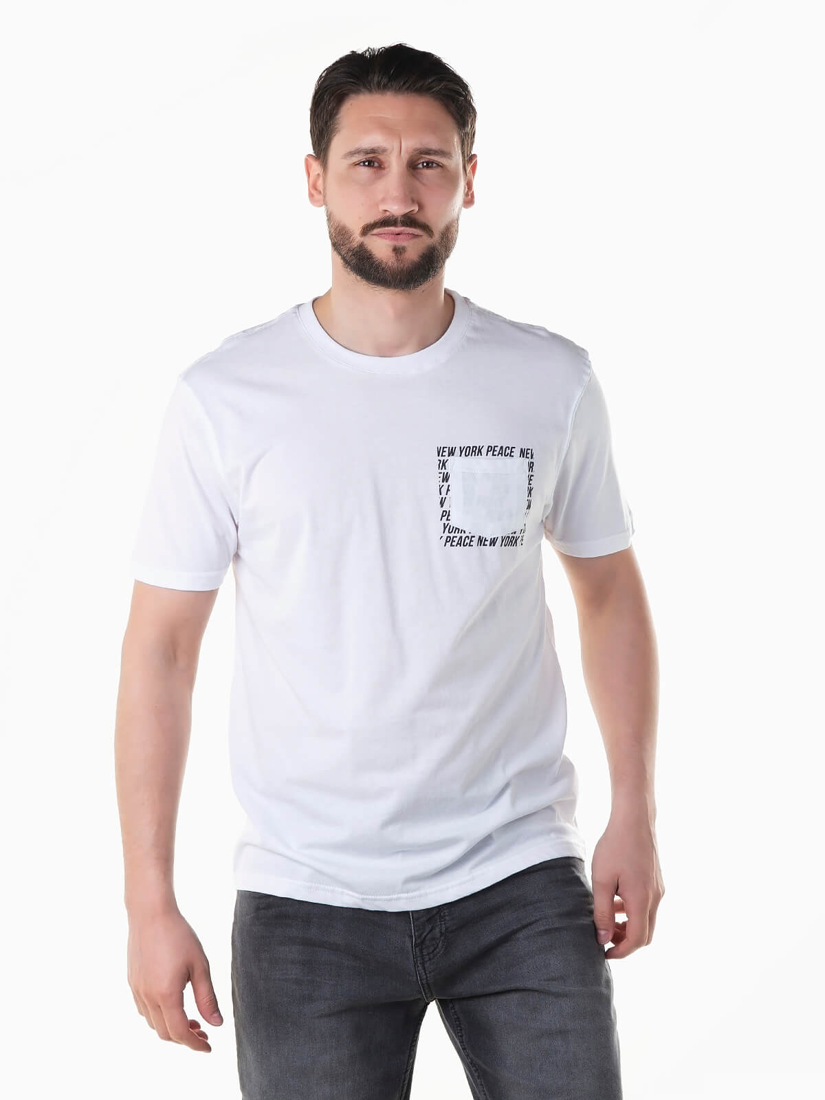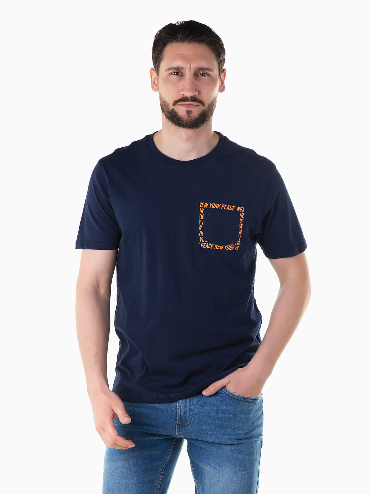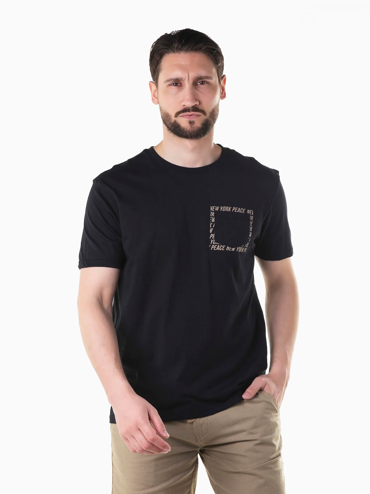 T-shirt com bolso estampado no peito. T-shirt de manga curta para homem com gola redonda.
