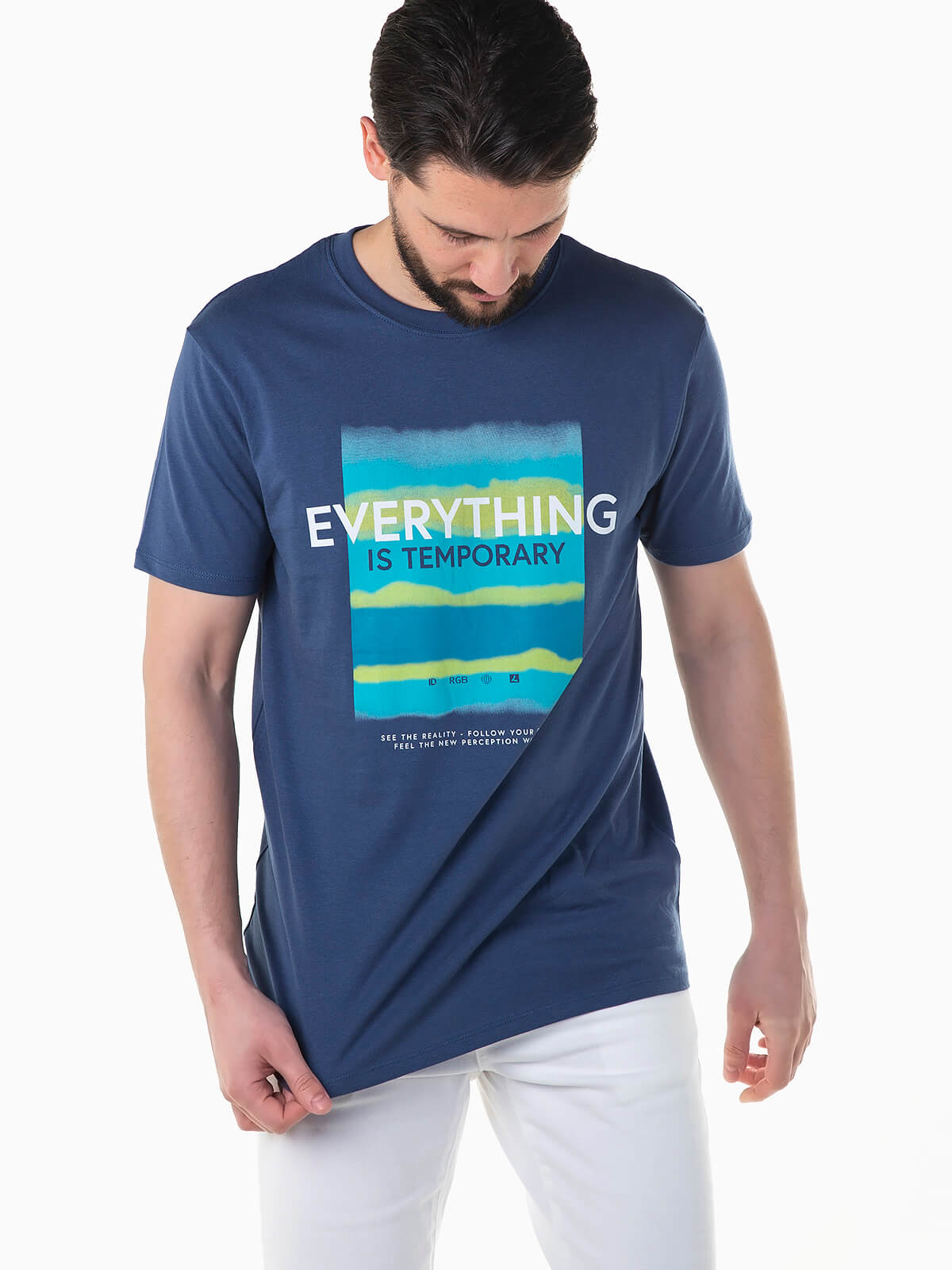 T-shirt com estampado em contraste à frente. T-shirt manga curta para homem. Gola redonda.