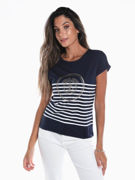T-shirt com folho em bordado inglês na cava. T-shirt sem mangas com decote redondo.