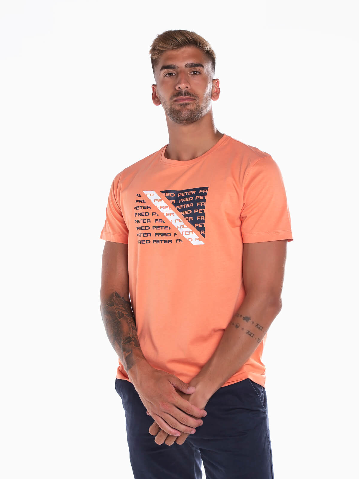 T-shirt manga curta com grafismo no peito para homem. T-shirt em tecido 100% algodão com gola redonda.