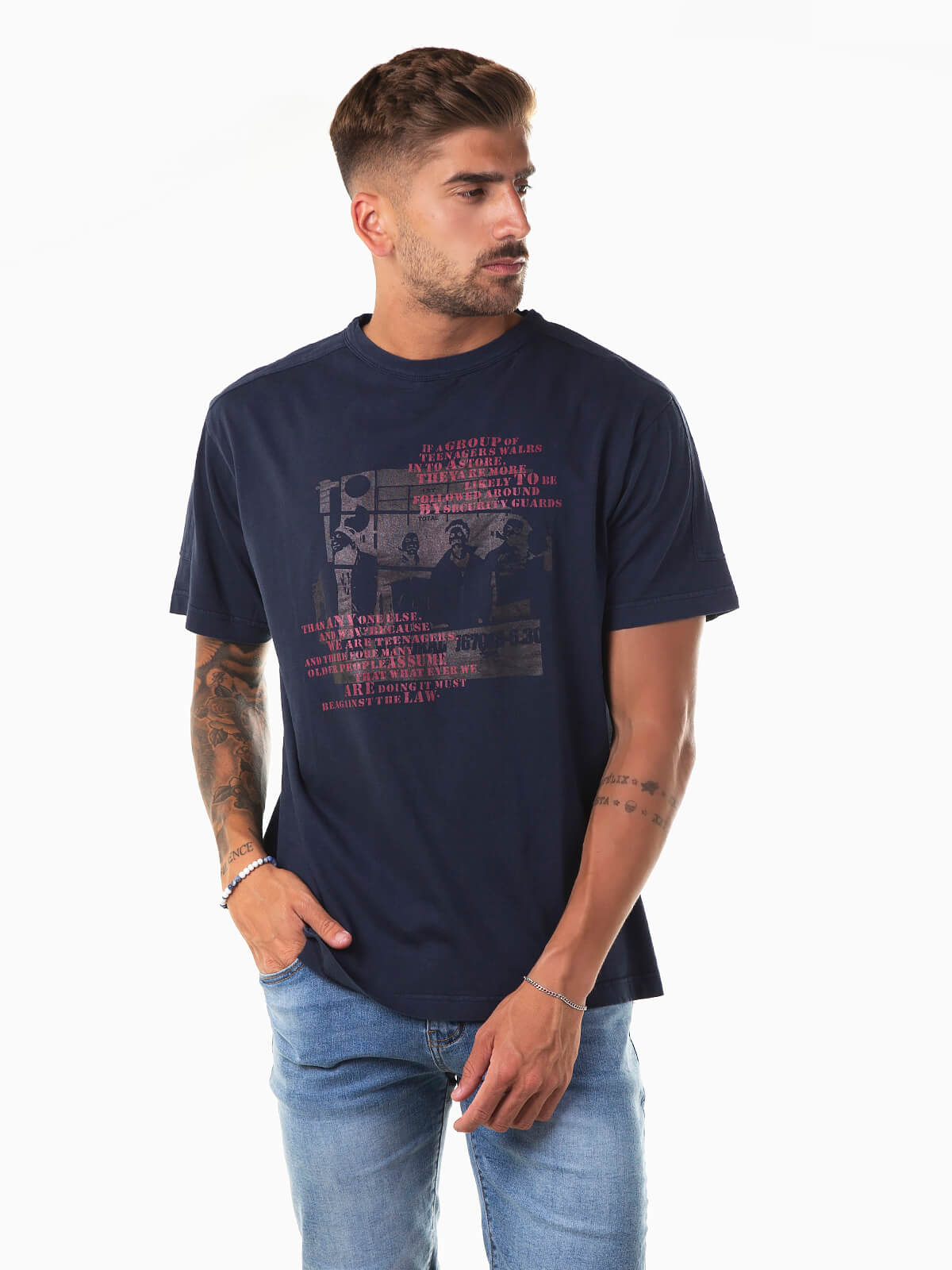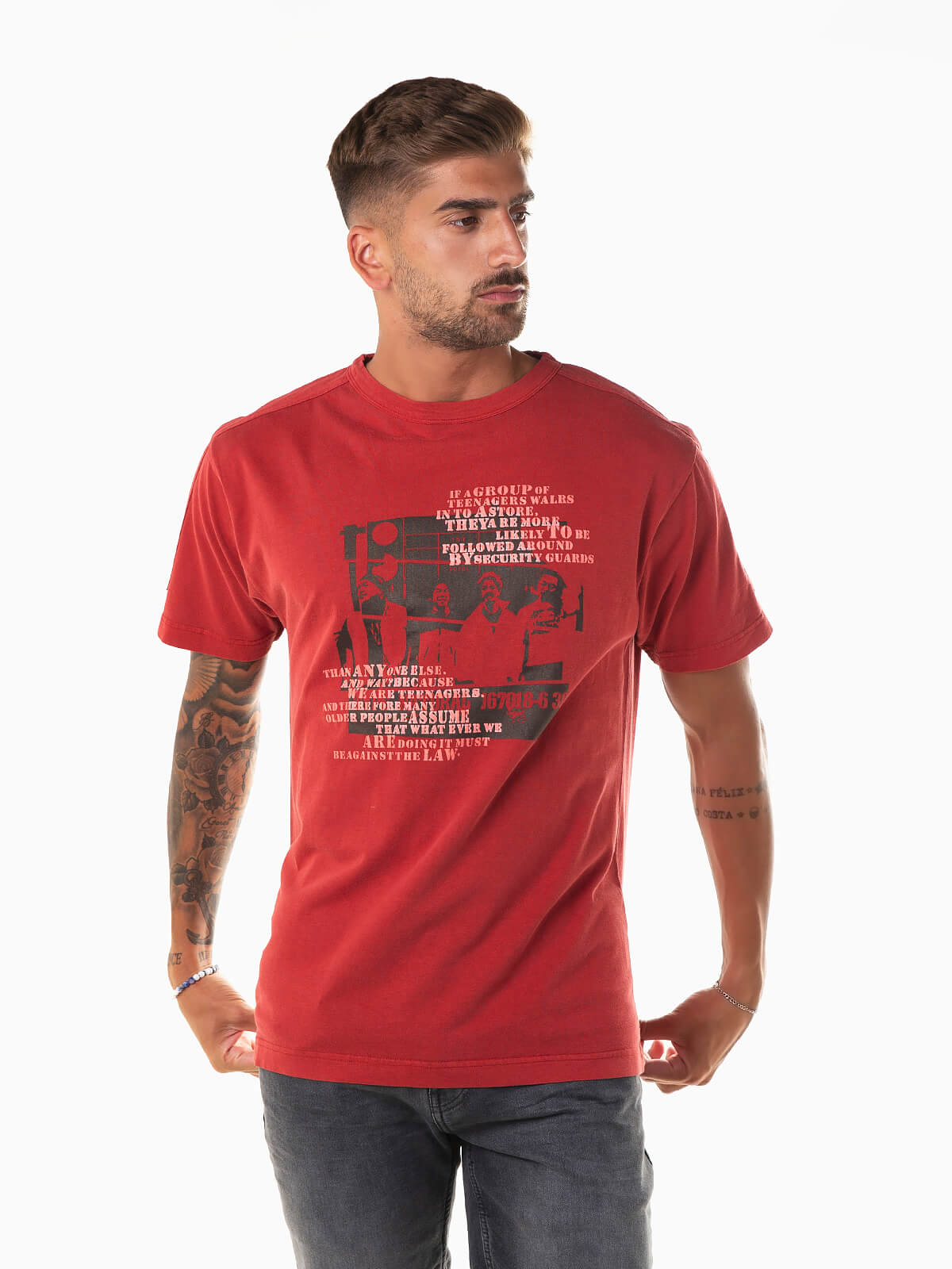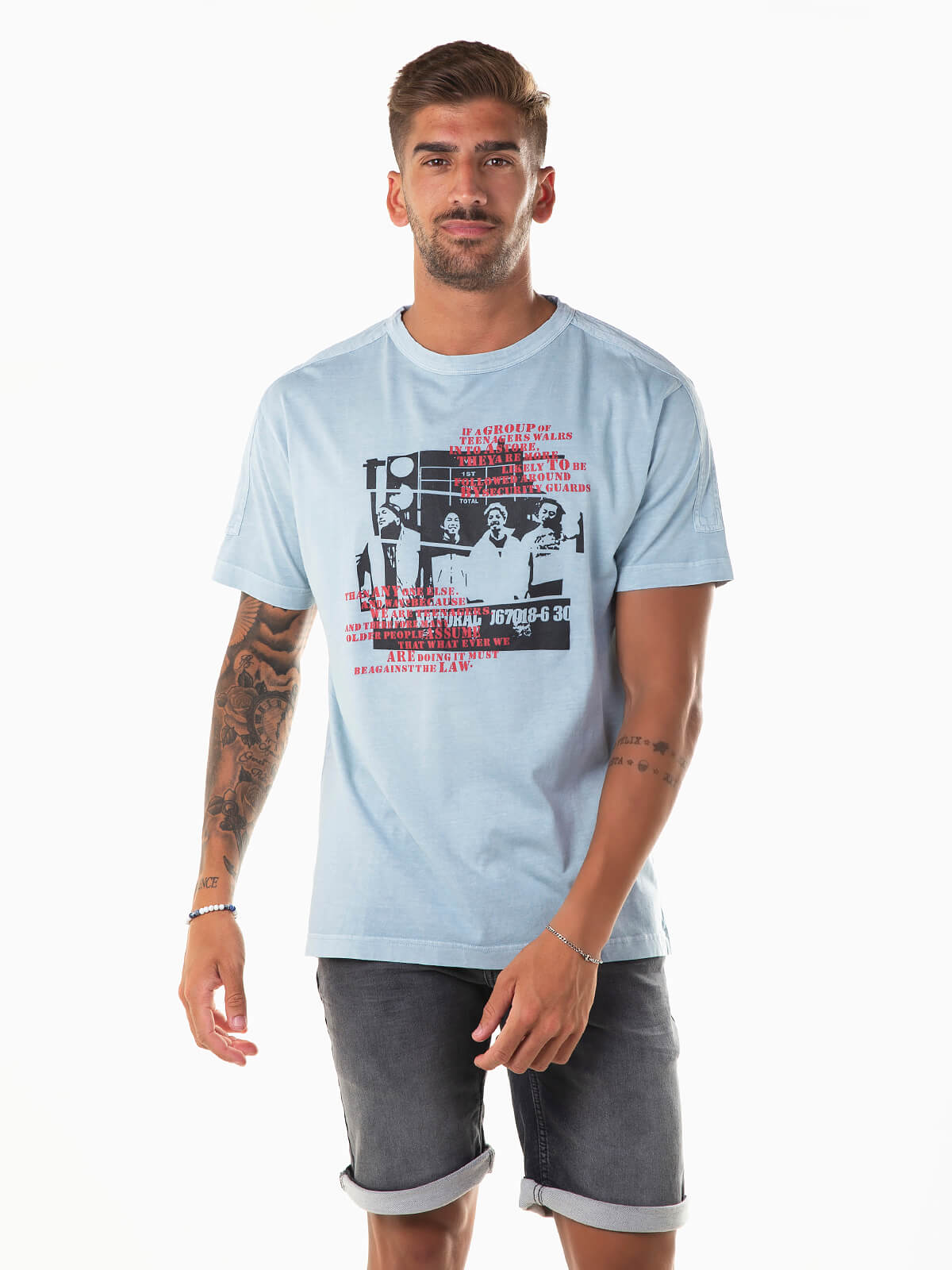 T-shirt para homem com imagem estampada à frente. T-shirt manga curta confecionada em tecido 100% algodão para maior conforto. Gola redonda.