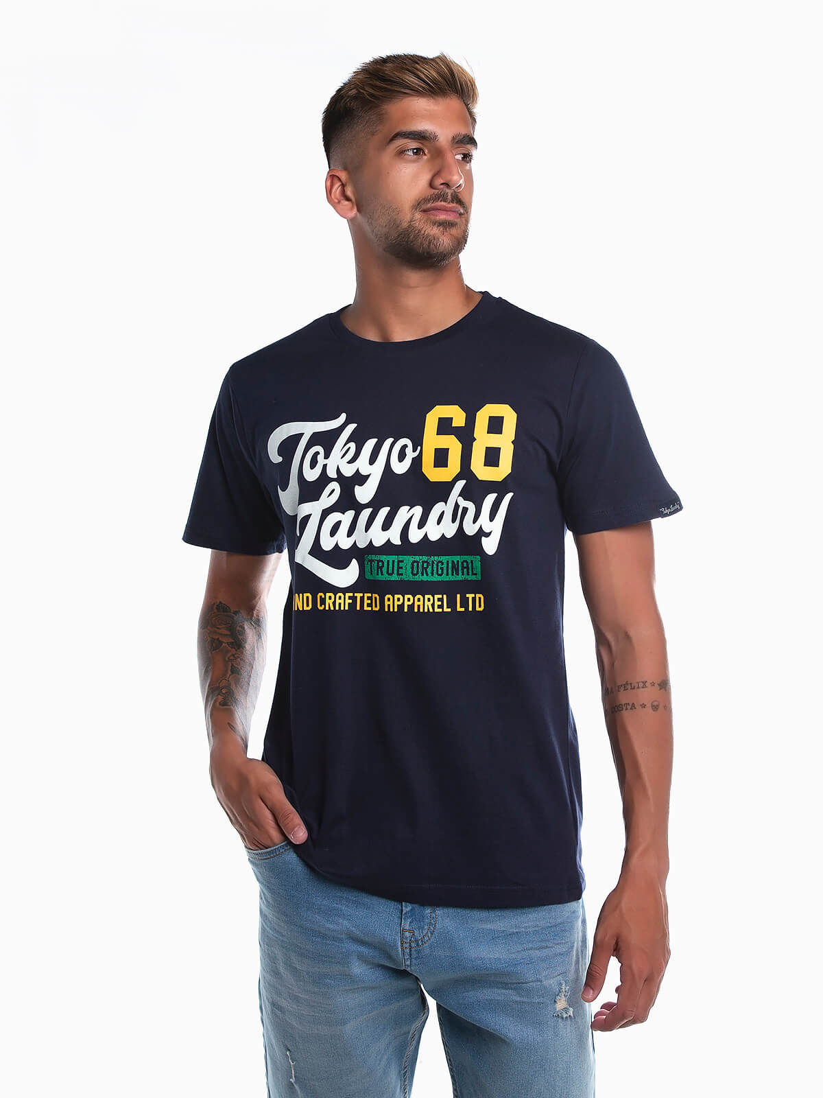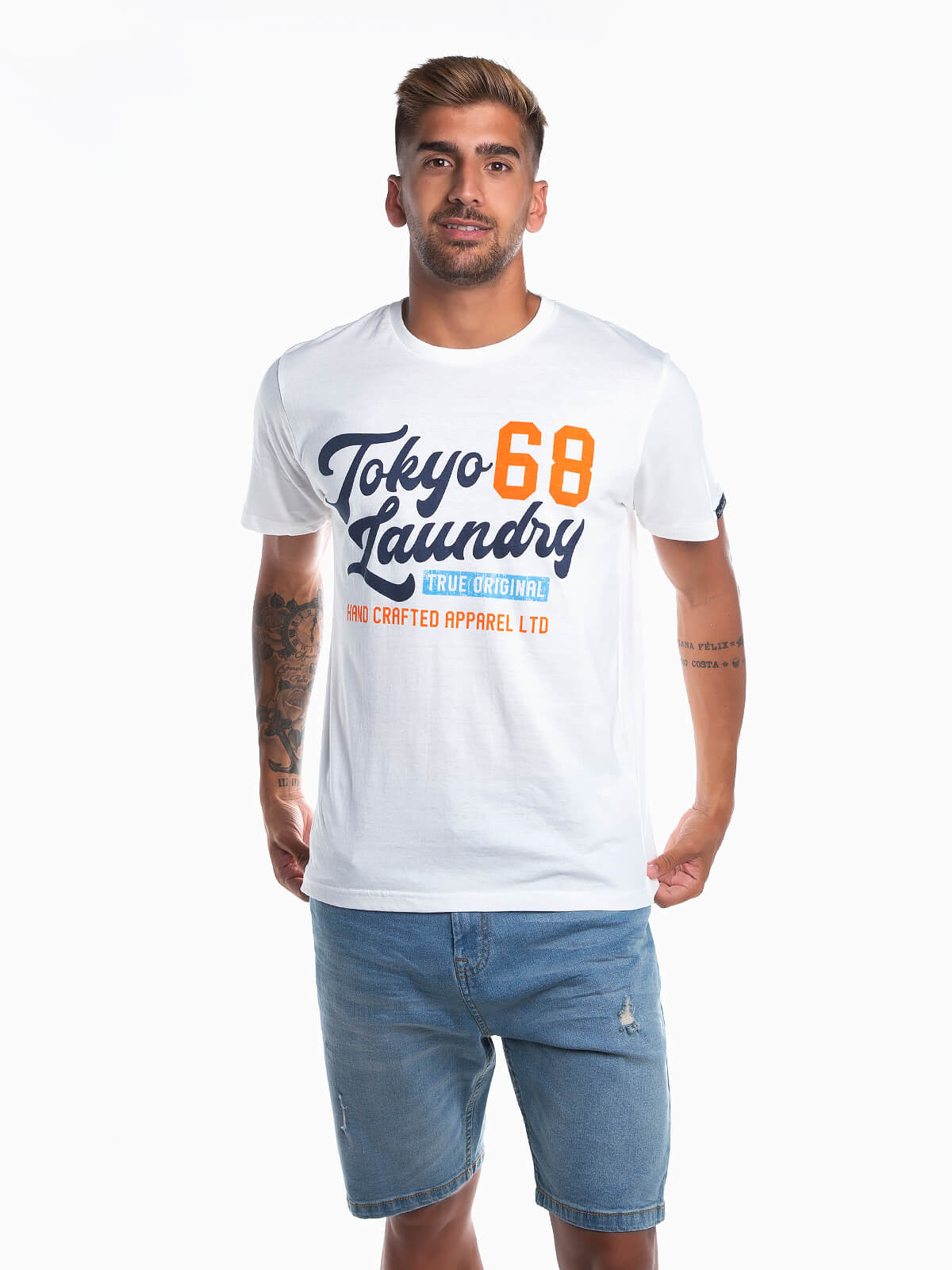 T-shirt manga curta com estampado no peito. T-shirt 100% algodão com gola redonda.