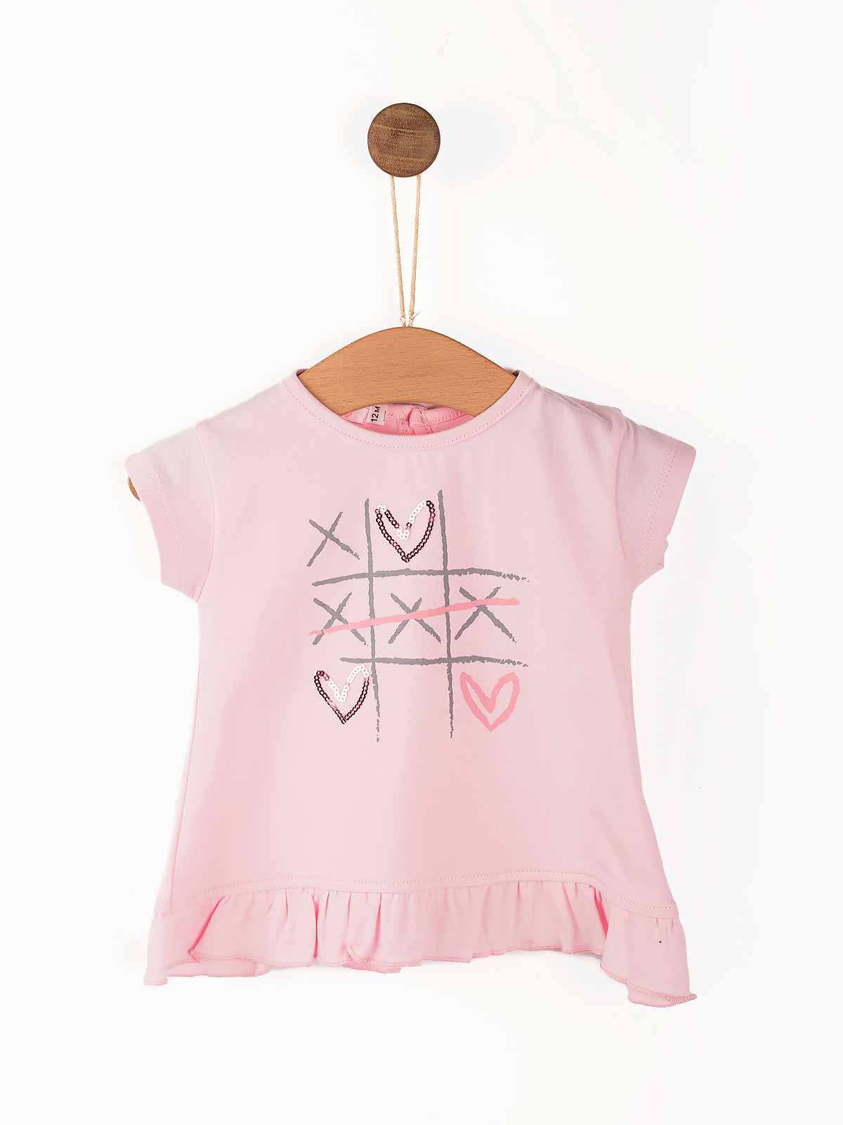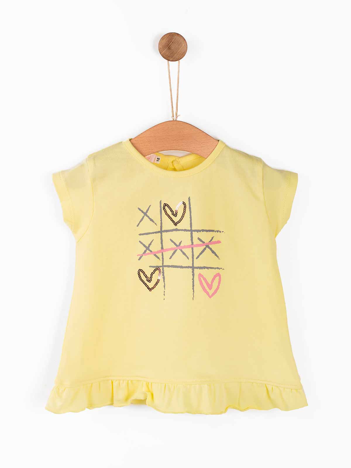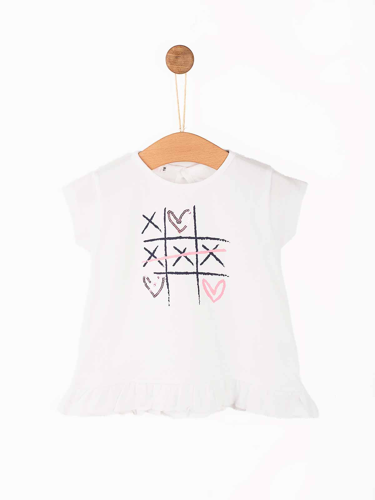 T-shirt de bebé estampada Jogo do Galo lantejoulas com folho em baixo. T-shirt de manga curta em algodão gola redonda com aperto de botão atrás.