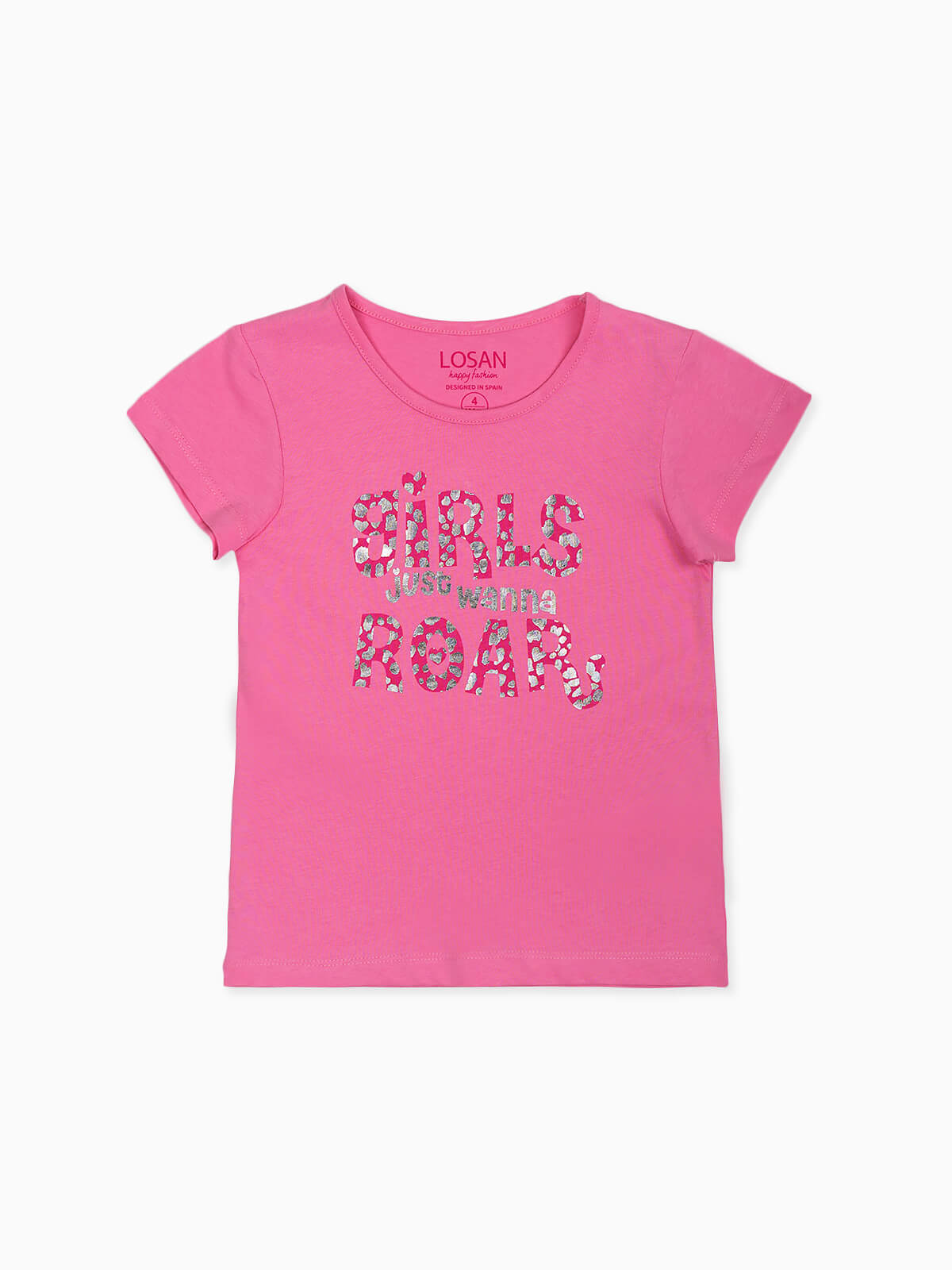 T-shirt estampada Girls Just Wanna Roar. T-shirt manga curta em algodão. Gola redonda.
