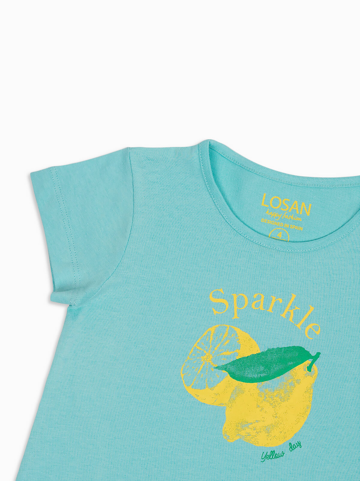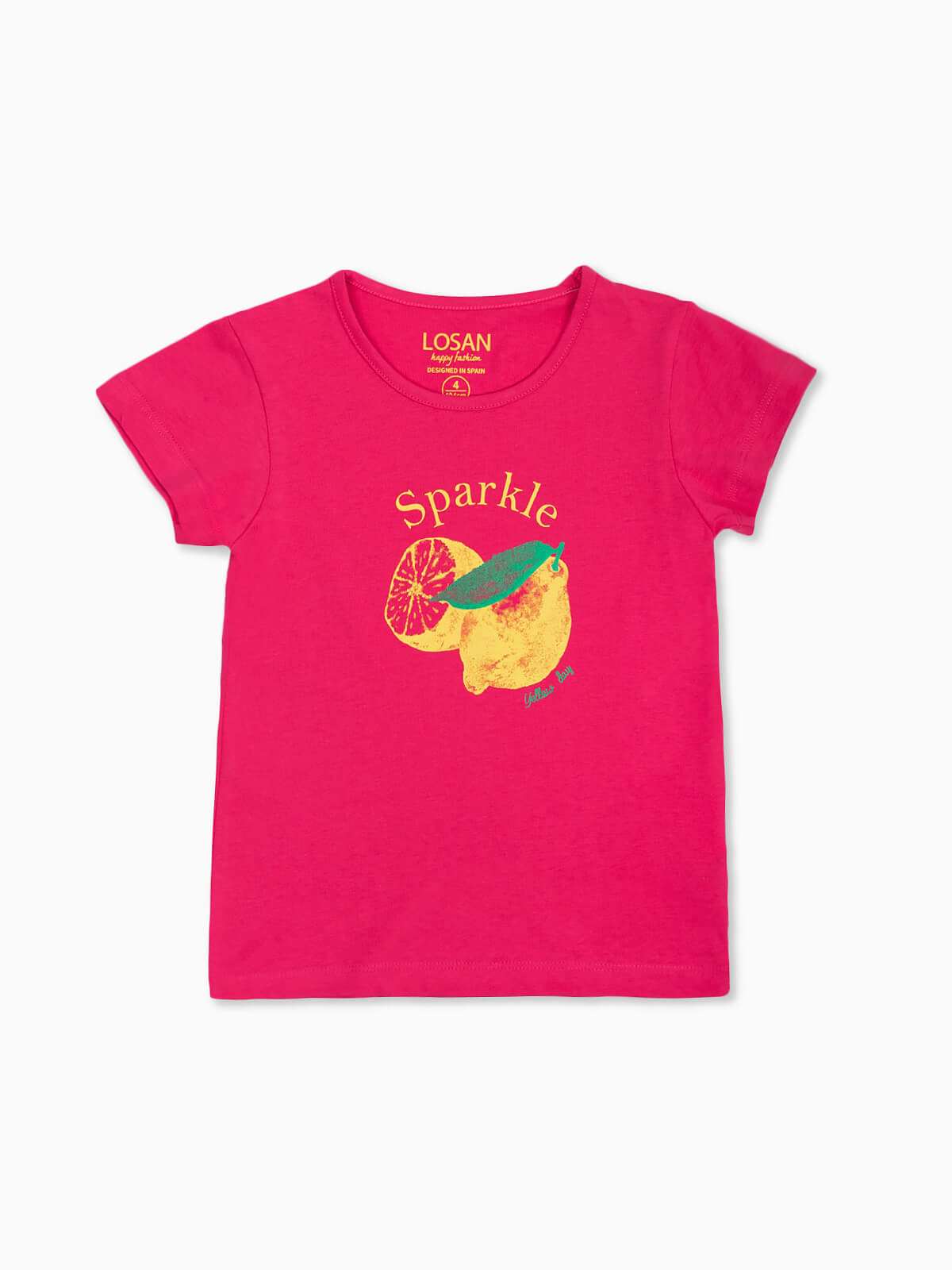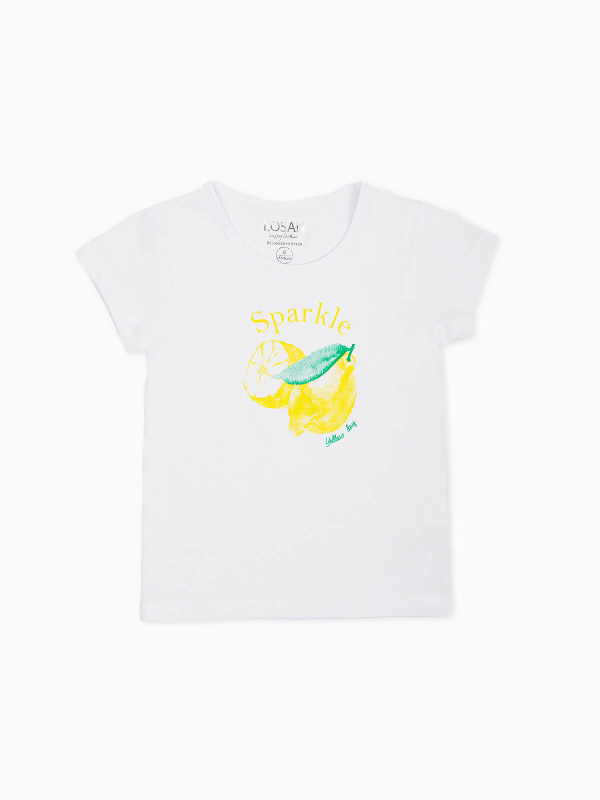T-shirt menina estampada limão Sparkle. T-shirt manga curta em algodão. Gola redonda.