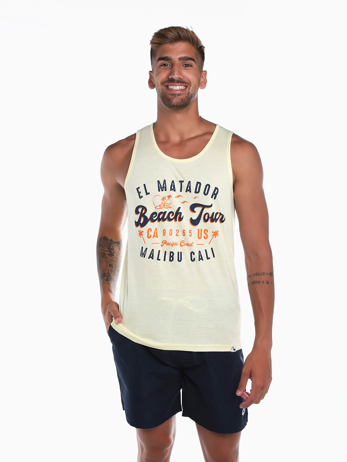 T-shirt de manga cava com motivos para homem. T-shirt em tecido 100% algodão com gola redonda.