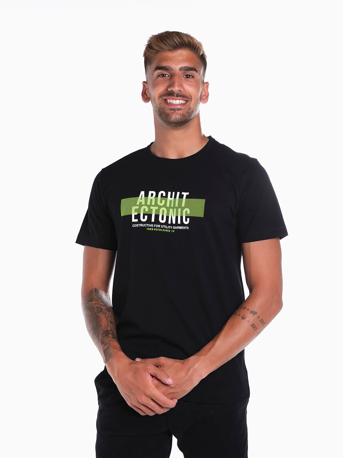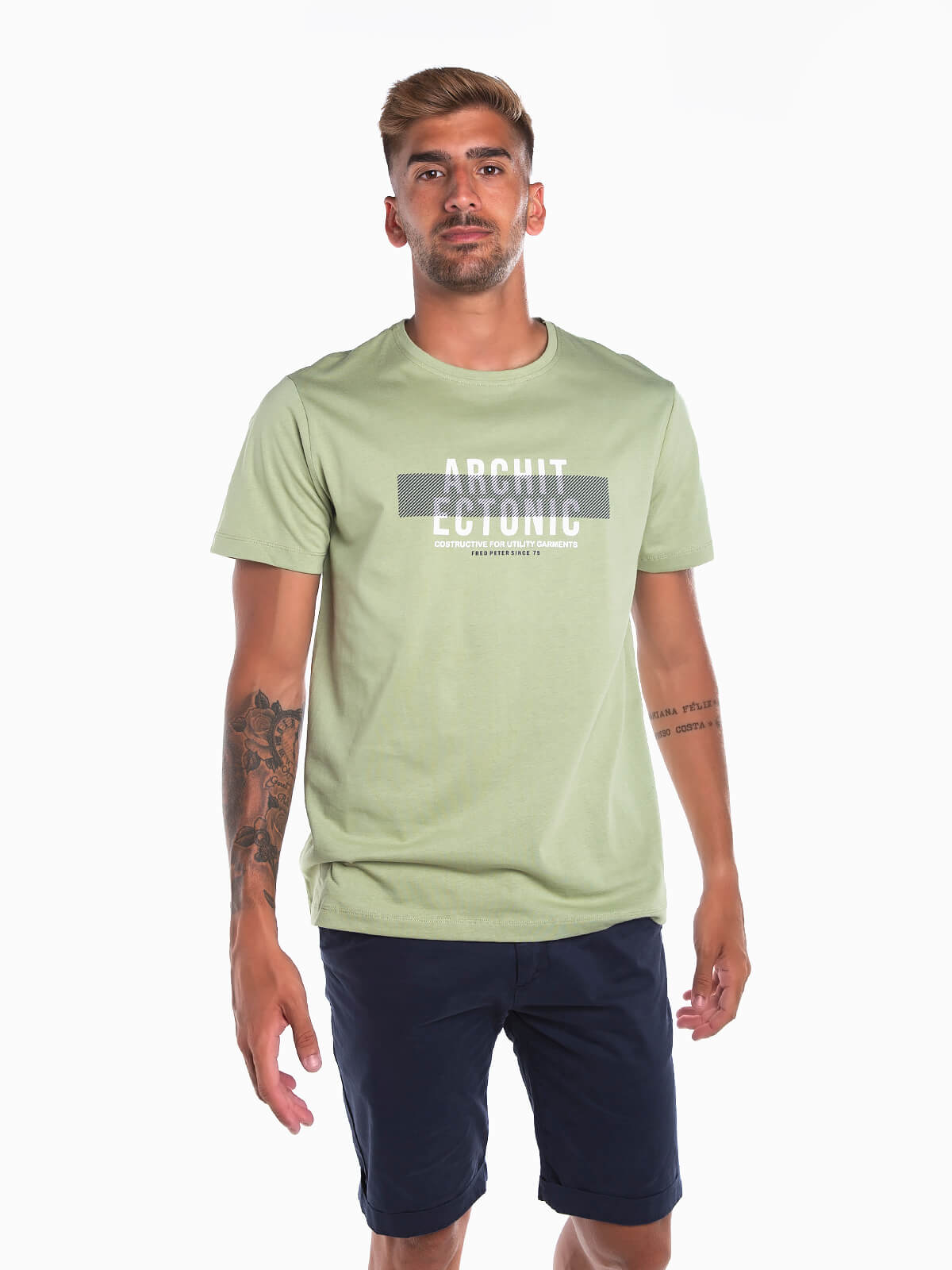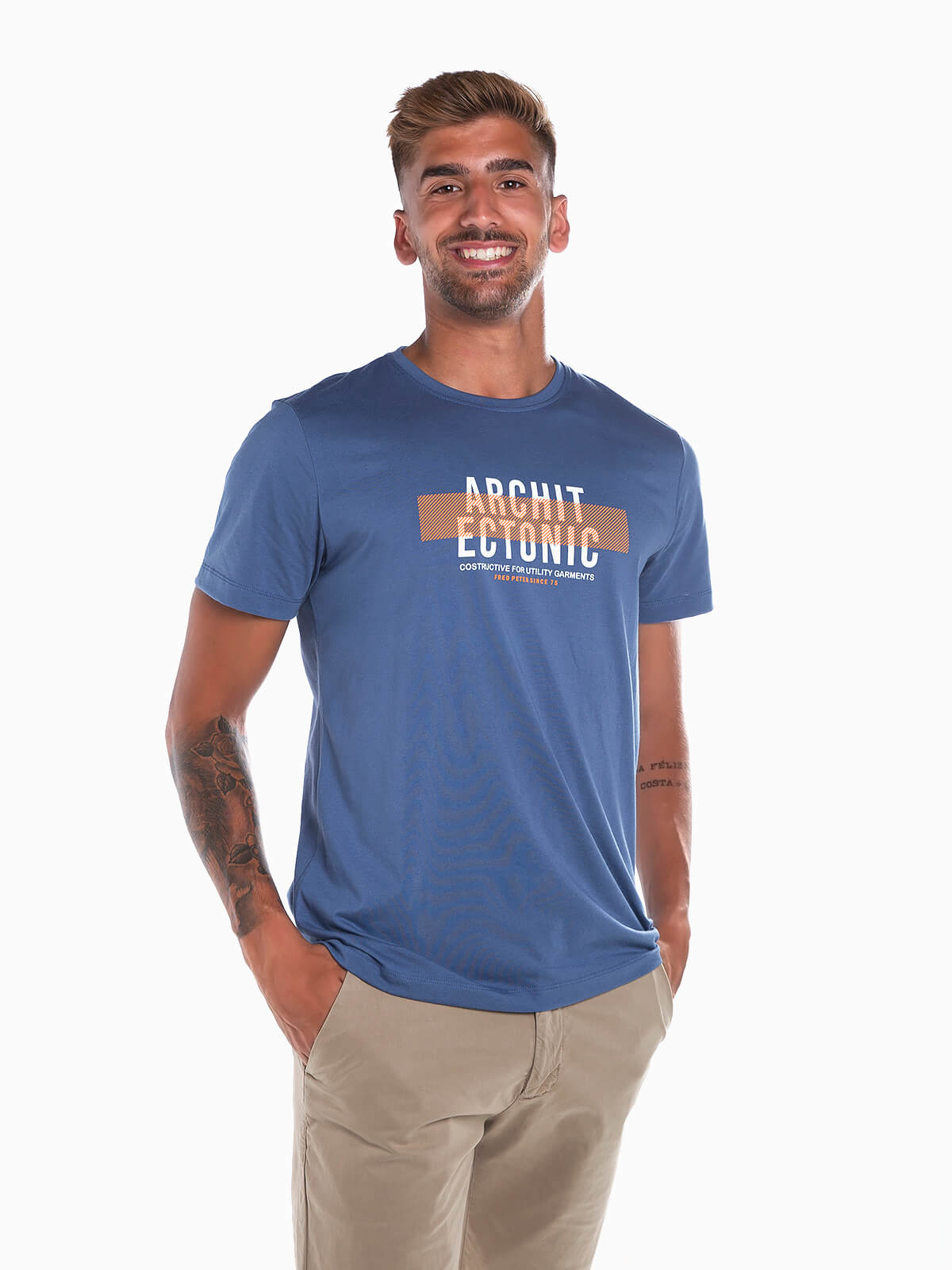 T-shirt com estampado no peito em contraste. T-shirt manga curta para homem em tecido 100% algodão.