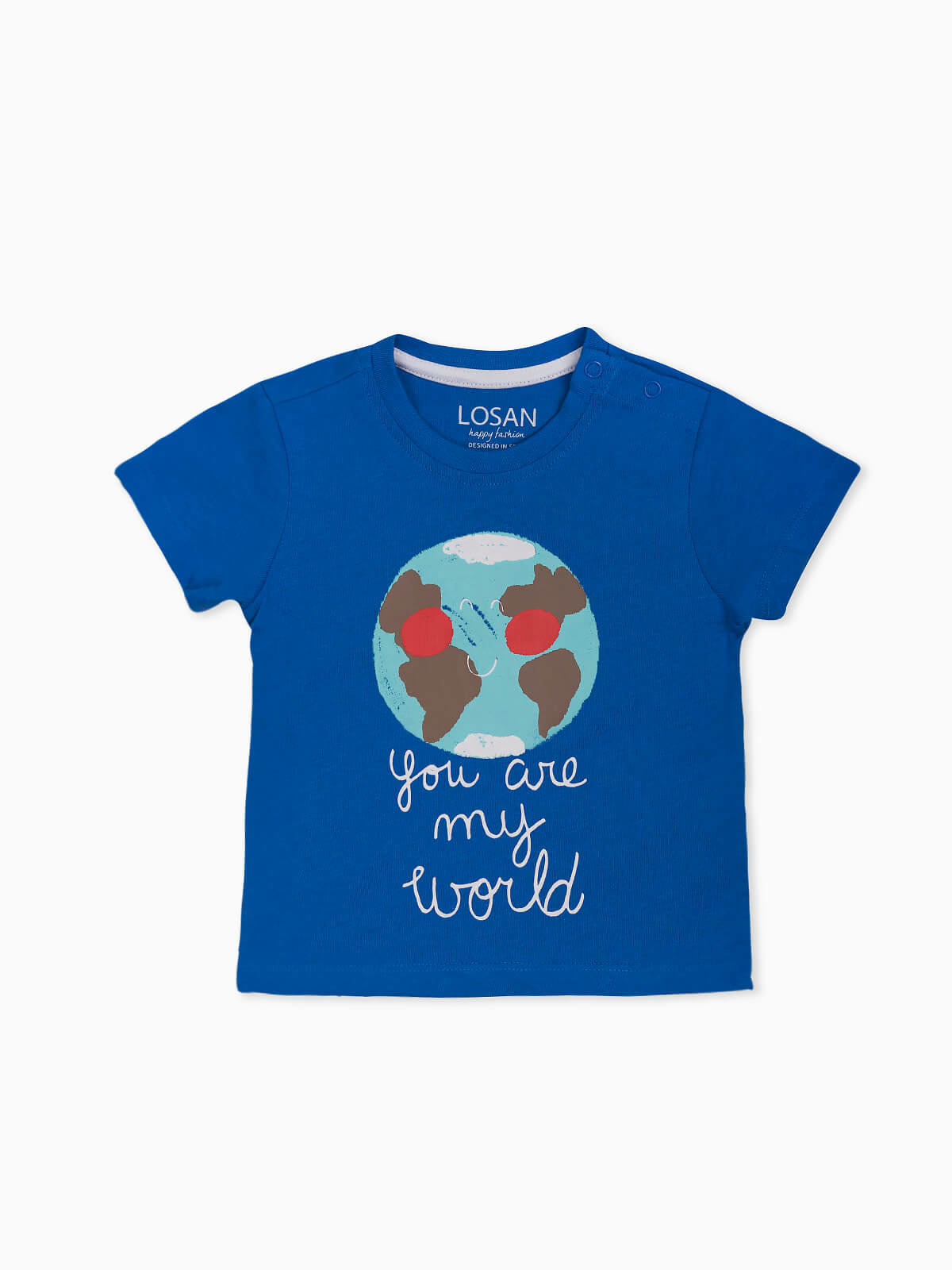 T-shirt bebé estampada You Are My World. T-shirt manga curta em algodão. Botões no ombro. Gola redonda.