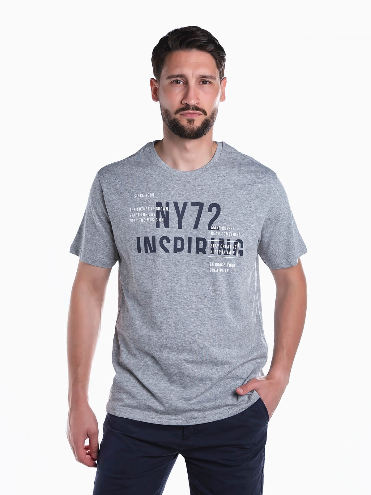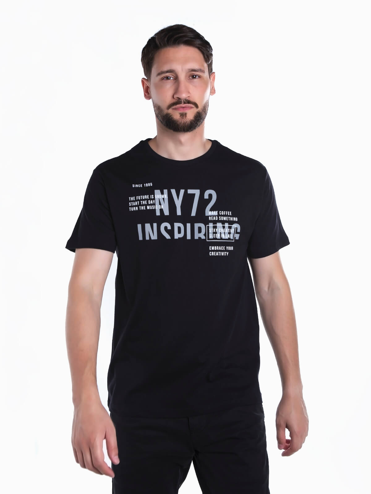 T-shirt de manga curta com estampado de mensagem em contraste. T-shirt para homem com gola redonda.