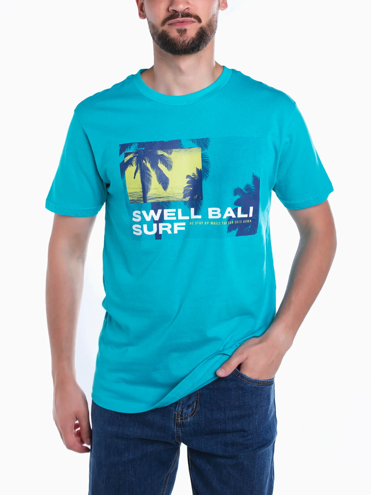 T-shirt de manga curta com estampado de imagem. T-shirt para homem em tecido 100% algodão com gola redonda.