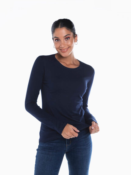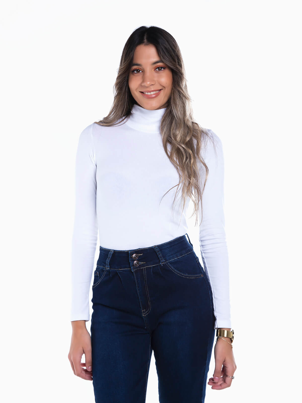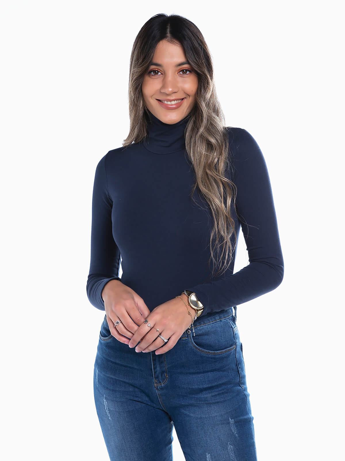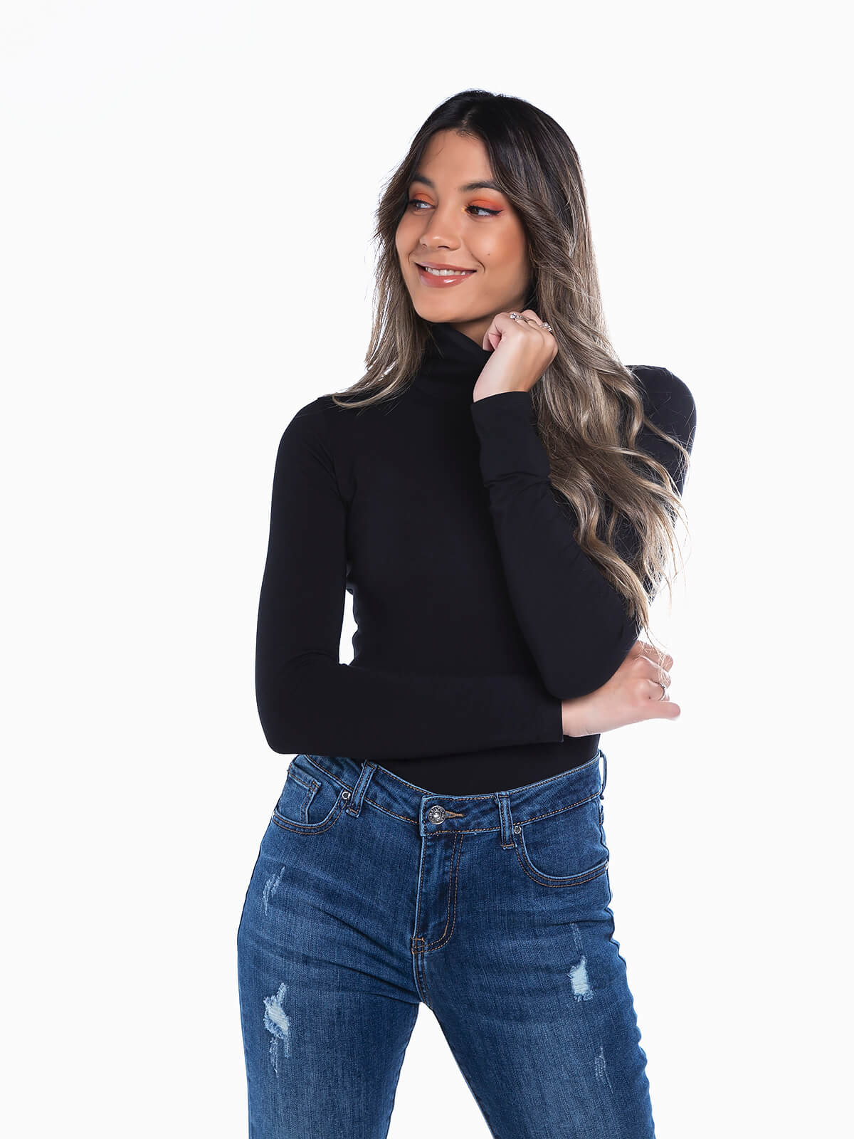 T-shirt justa de gola alta com manga comprida. Interior cardado.