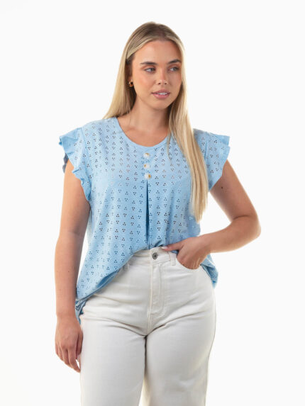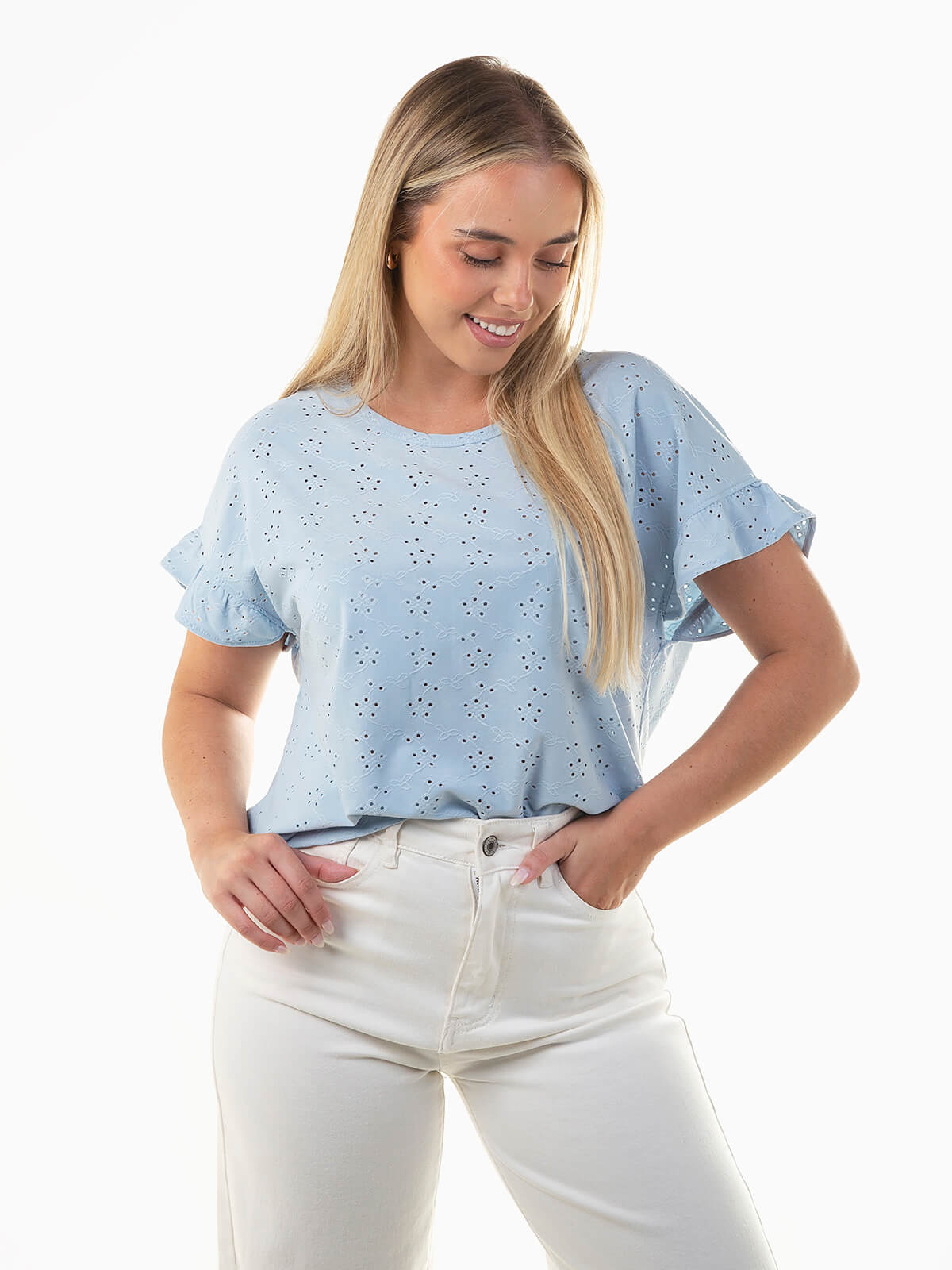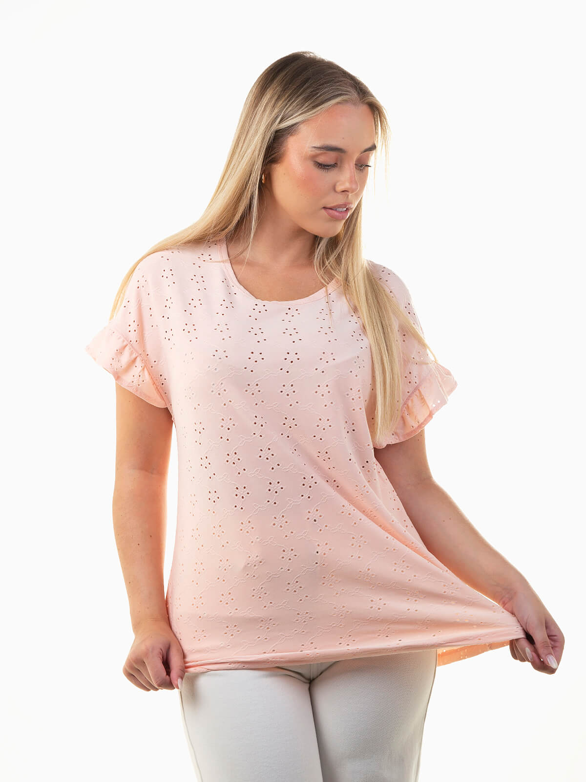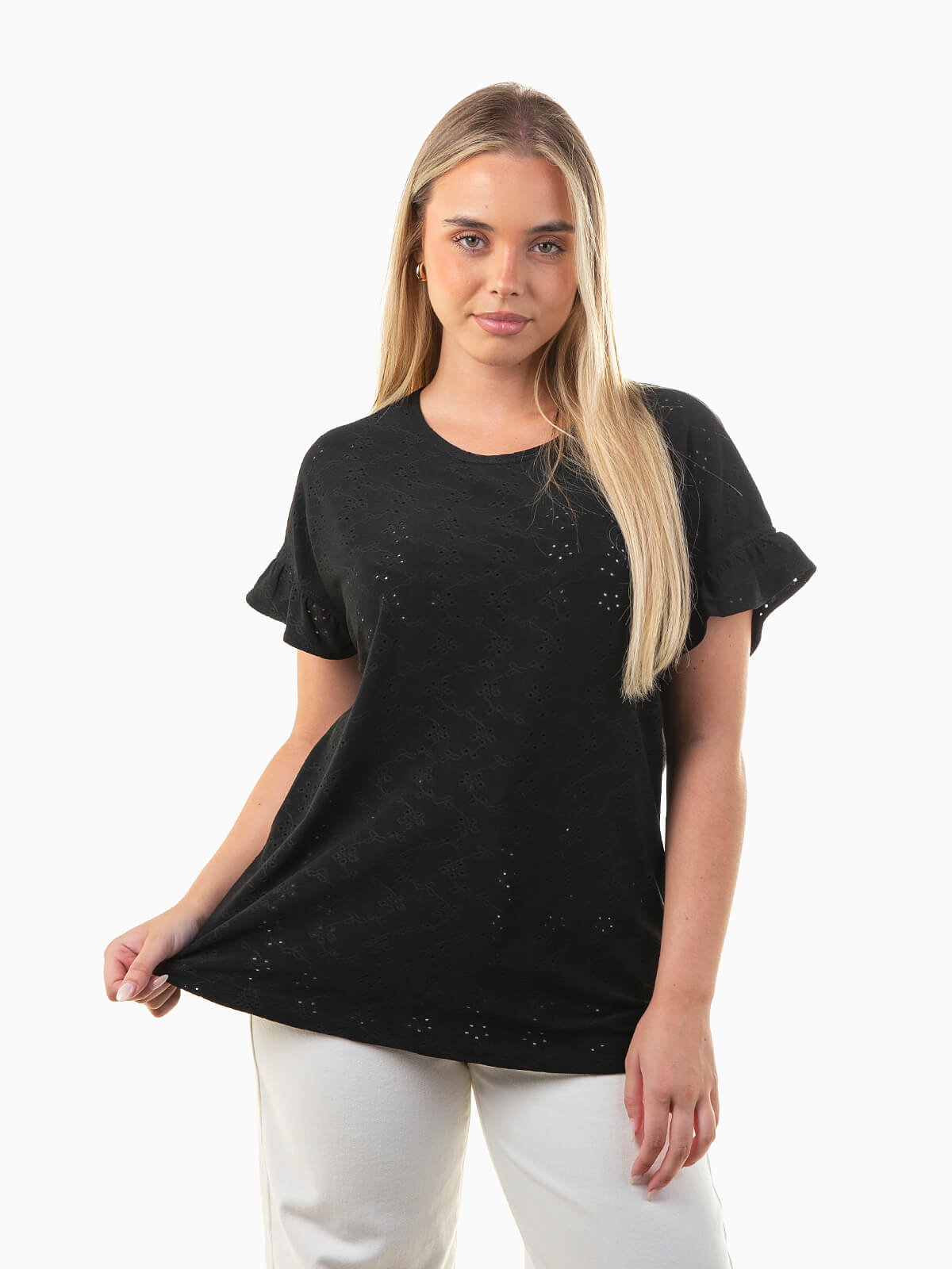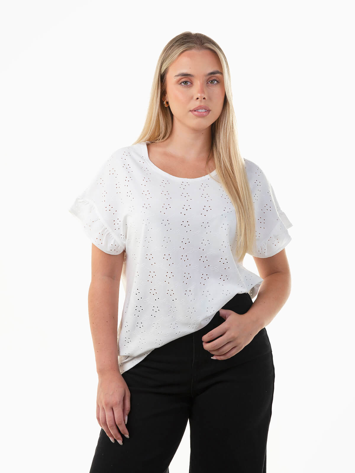 Início Mulher T-shirts T-shirt larga com folho e bordado suíço