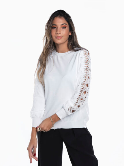 T-shirt em malha canelada com folhos aplicados na cava. T-shirt sem mangas de gola redonda.