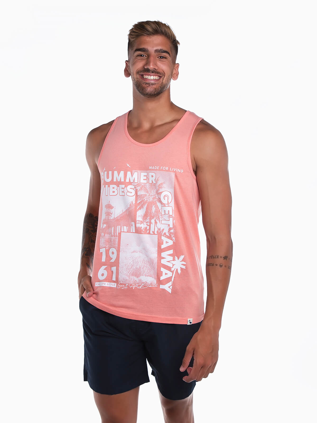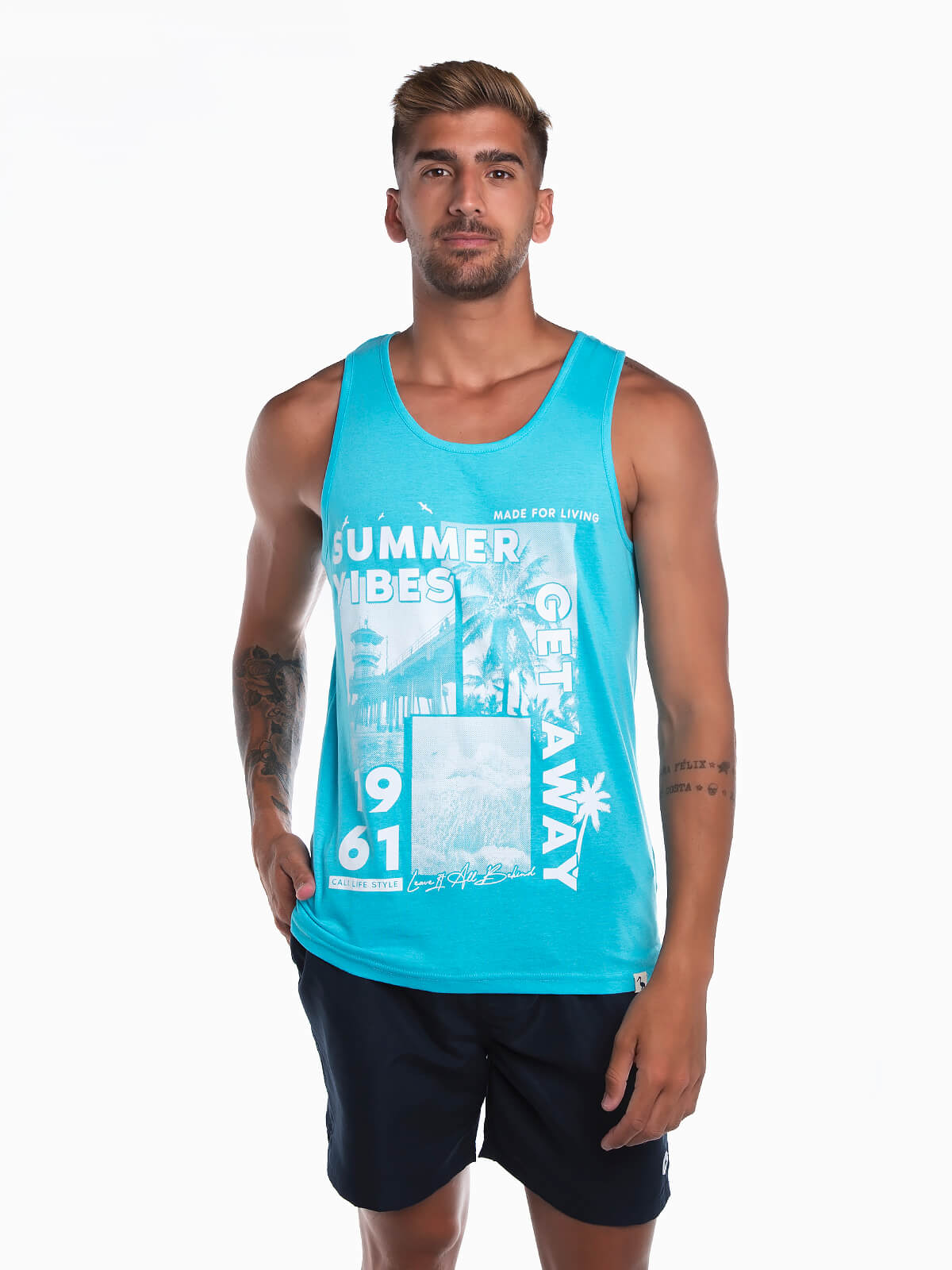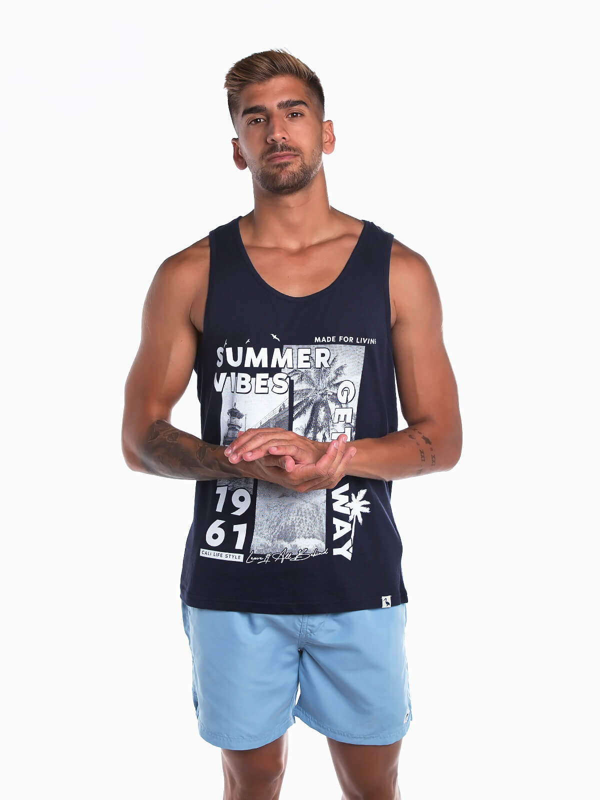 T-shirt de manga cava com estampado de imagens. T-shirt em tecido 100% algodão com gola redonda.