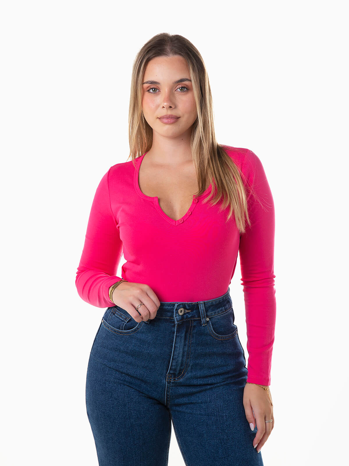 T-shirt manga comprida com botões