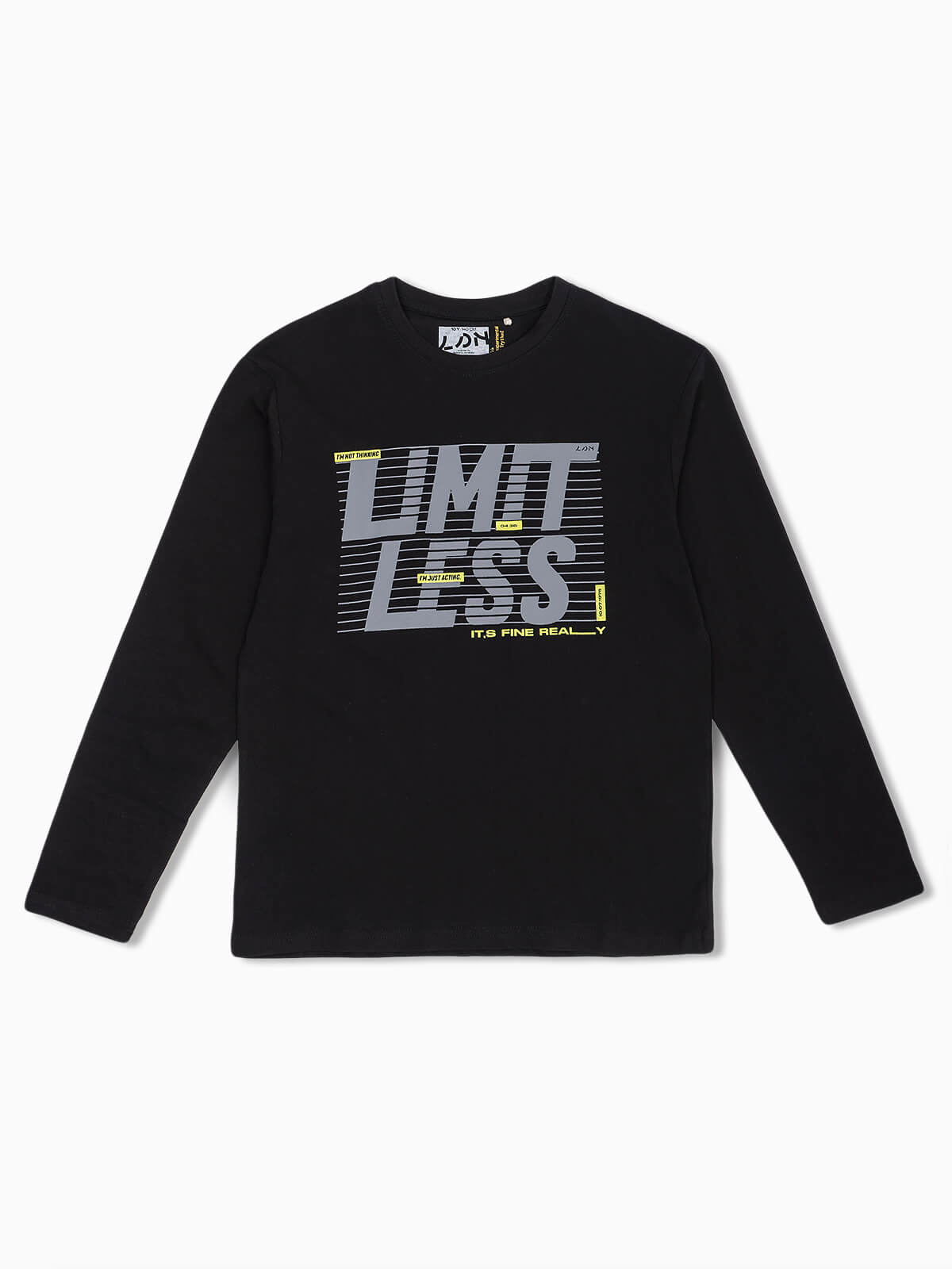 T-shirt de manga comprida com estampado no peito. T-shirt para menino em tecido 100% algodão com gola redonda.