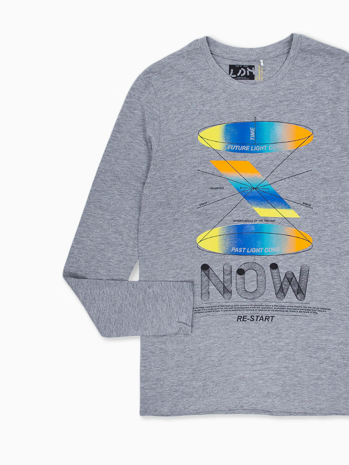 T-shirt de manga comprida com estampado para menino. T-shirt com decote redondo.