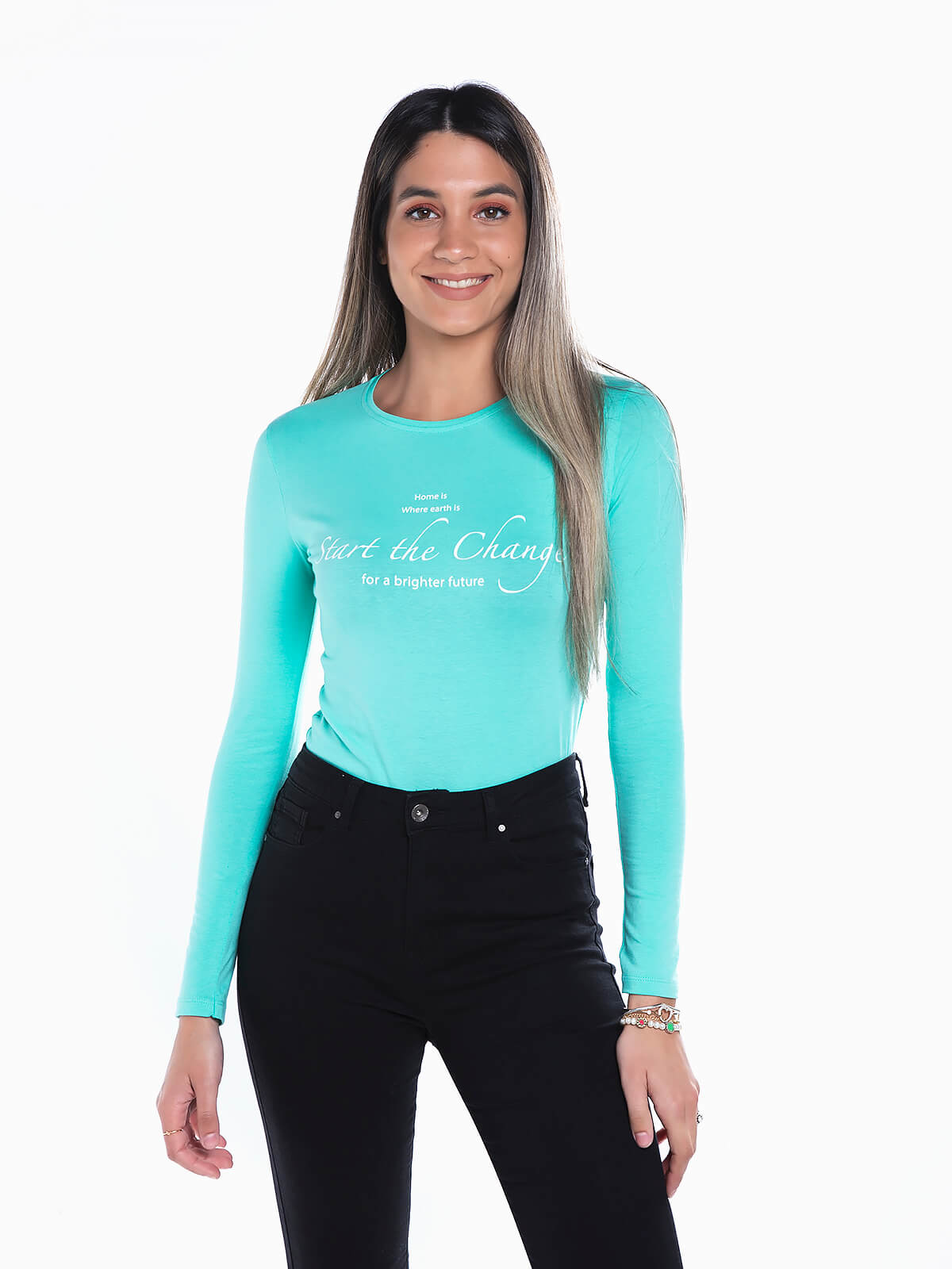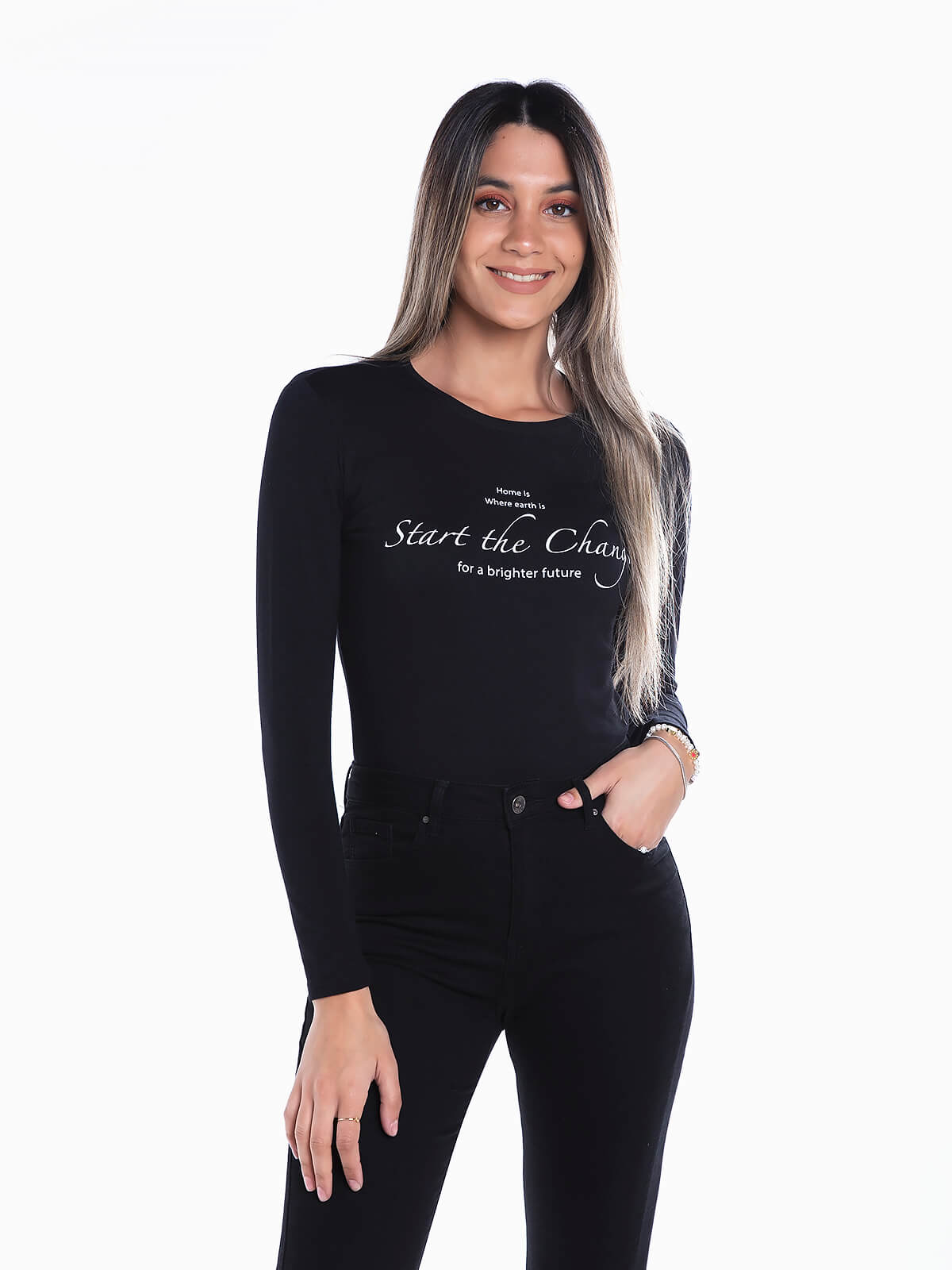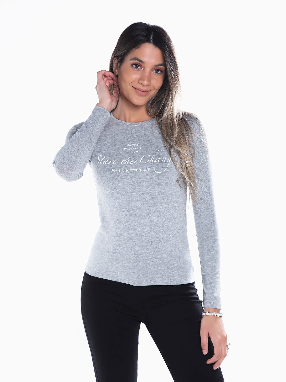 T-shirt de manga comprida com estampado de letras no peito. T-shirt com gola redonda.