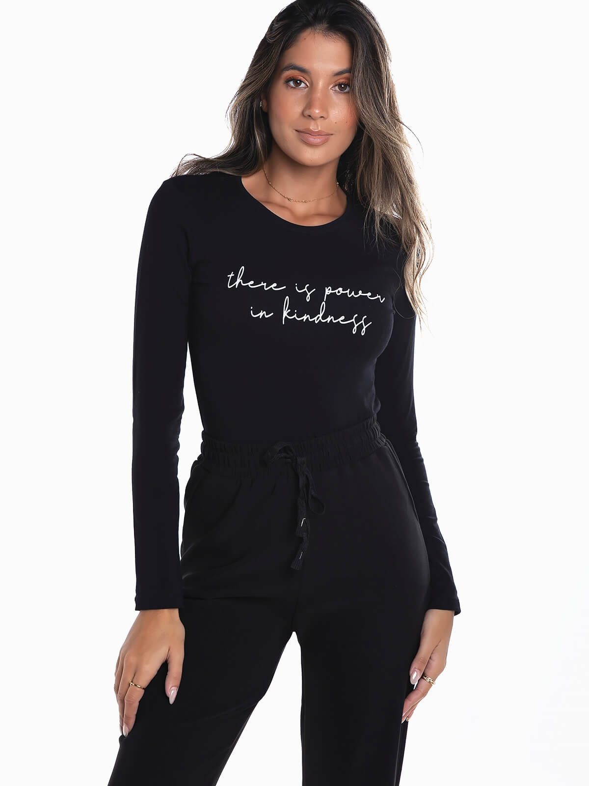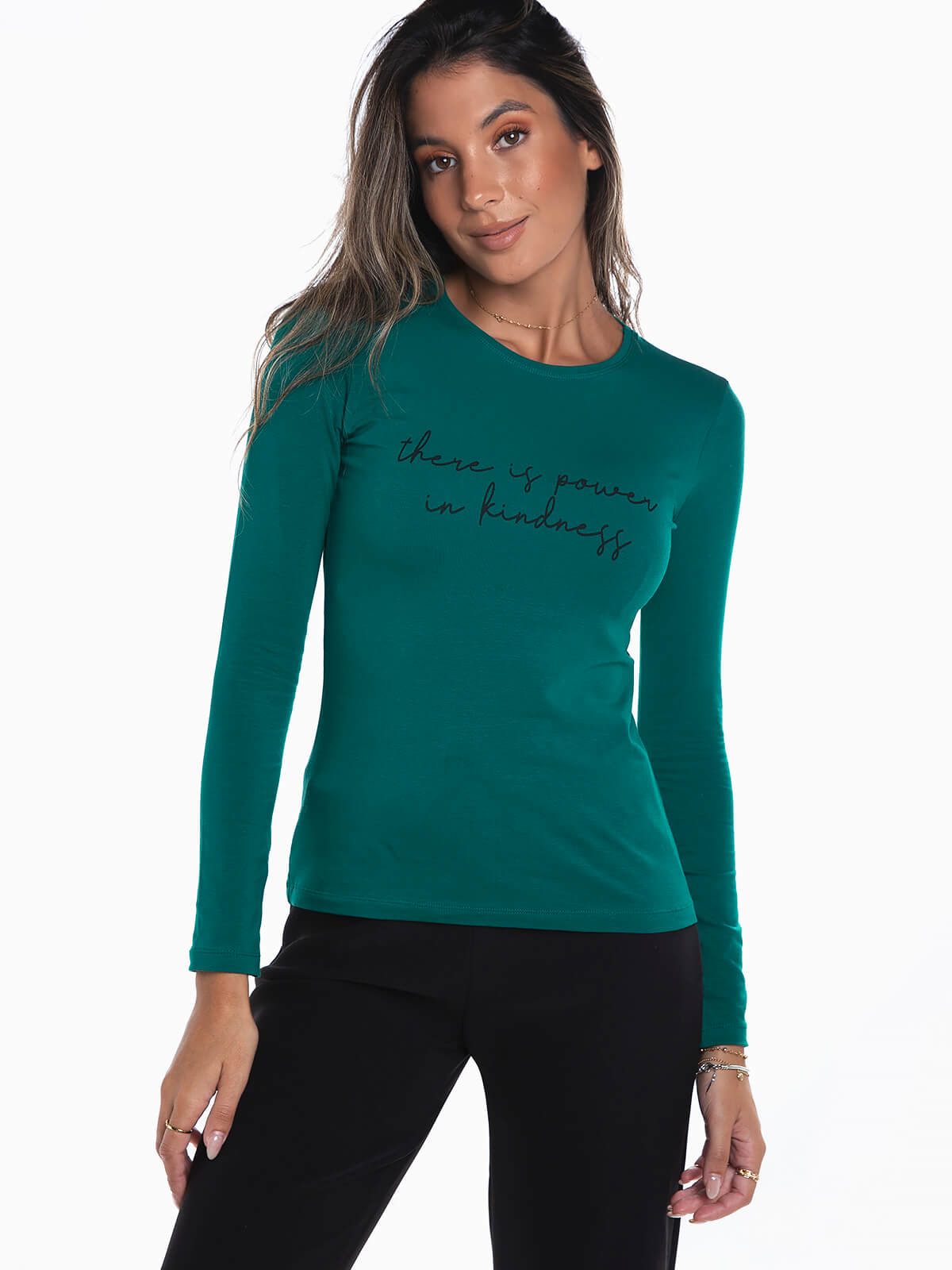 T-shirt de manga comprida com mensagem estampada. T-shirt para senhora com decote redondo.