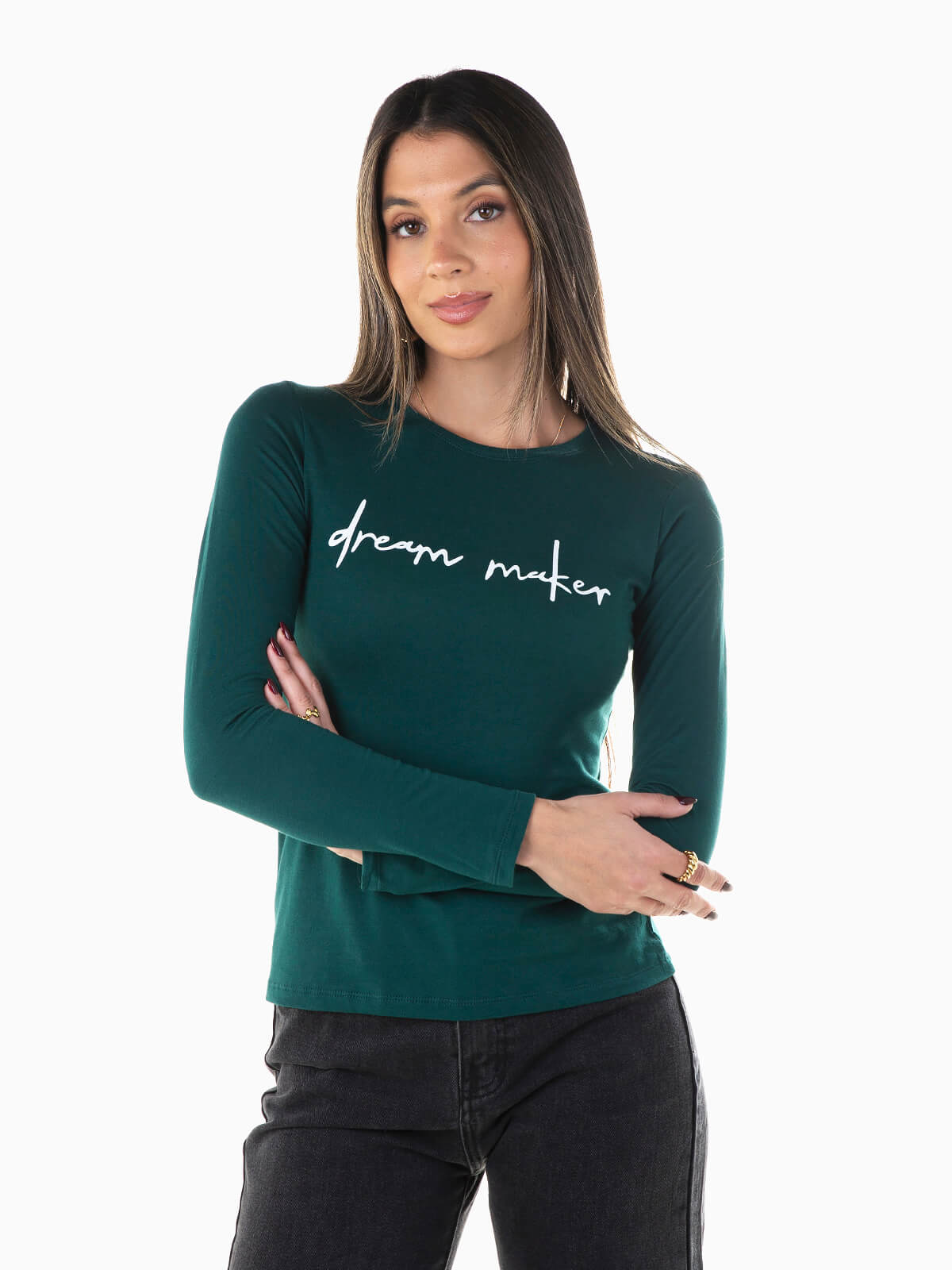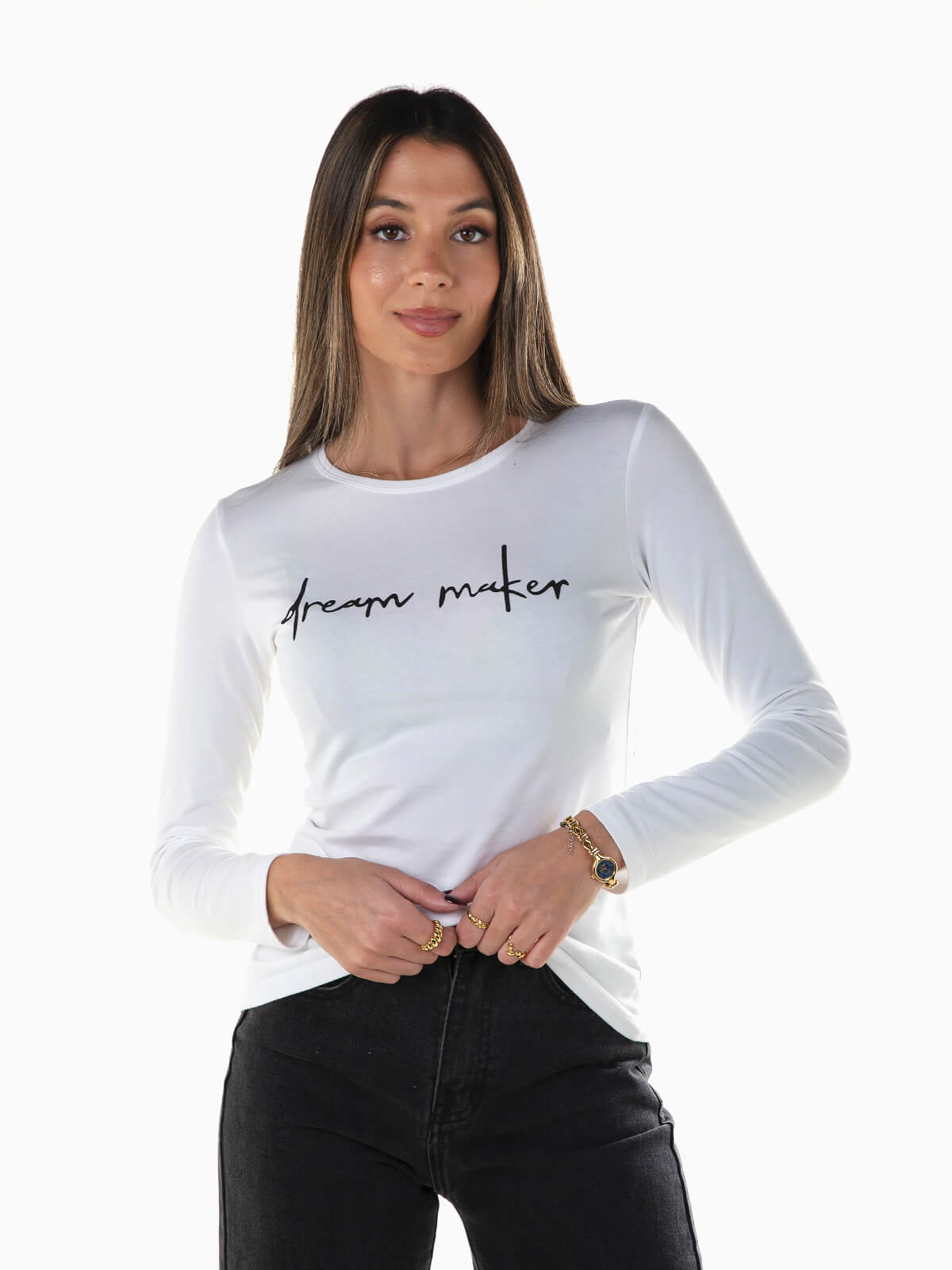 Início Mulher T-shirts T-shirt manga comprida com mensagem