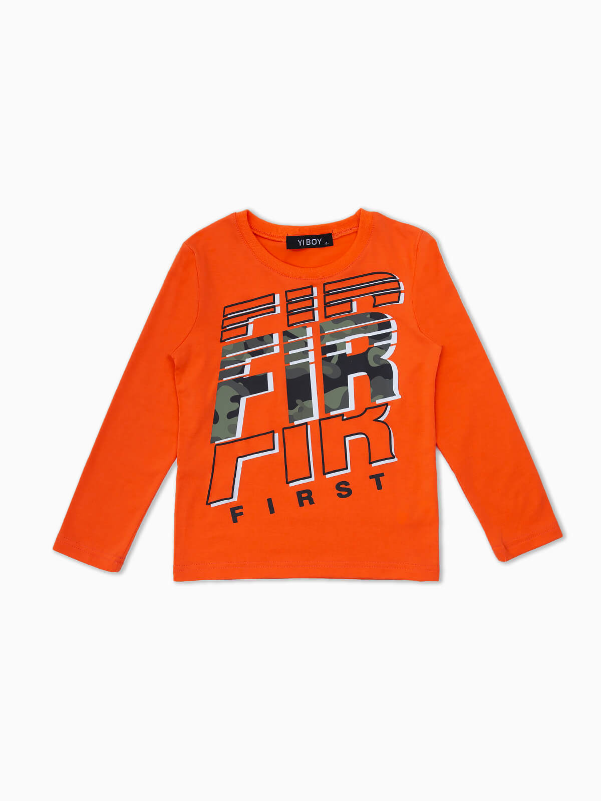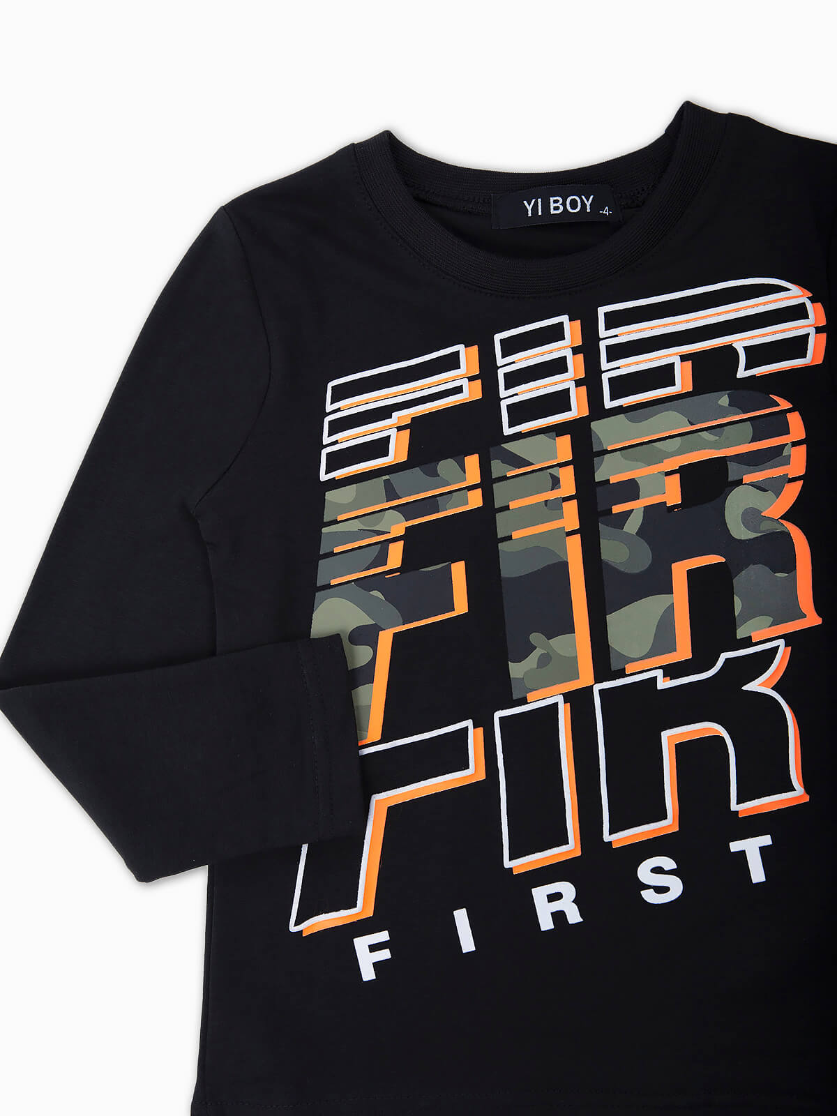 T-shirt de manga comprida com estampado de letras em camuflado. T-shirt de gola redonda.