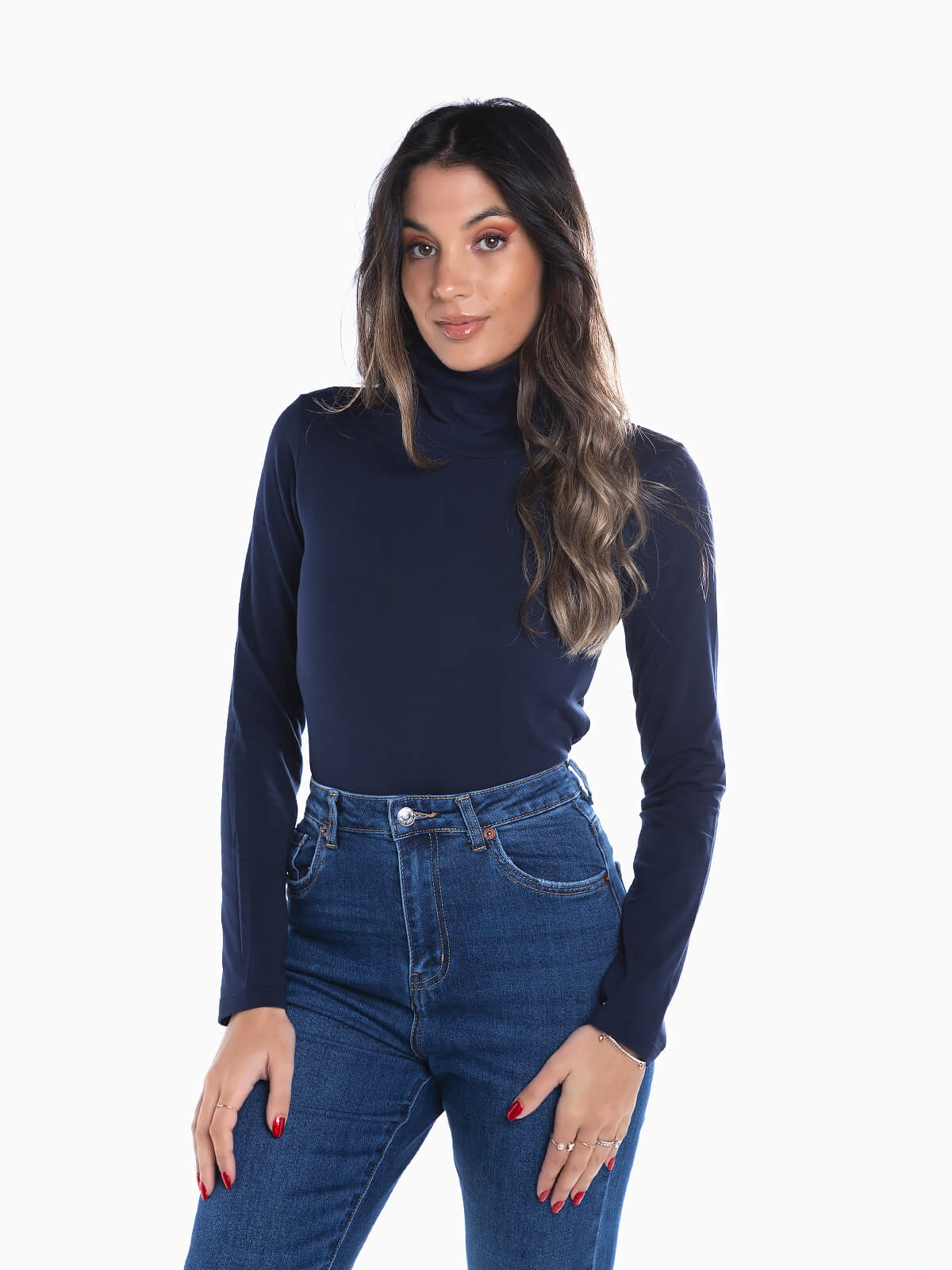 T-shirt de manga comprida com gola alta para senhora. T-shirt em tecido de algodão com interior cardado.