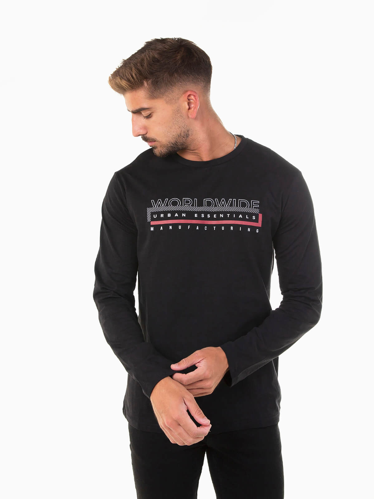 T-shirt básica para homem, com gola redonda e lettering discreto no peito. Ideal para looks casuais e descontraídos. Usa com sweatshirt ou casaco bomber para um estilo urbano.