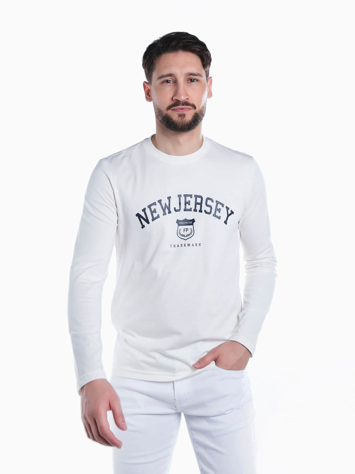 T-shirt de manga comprida com estampado ‘New Jersey’. T-shirt com gola redonda.