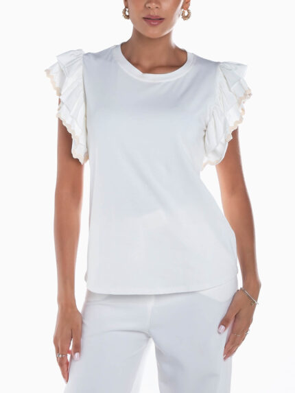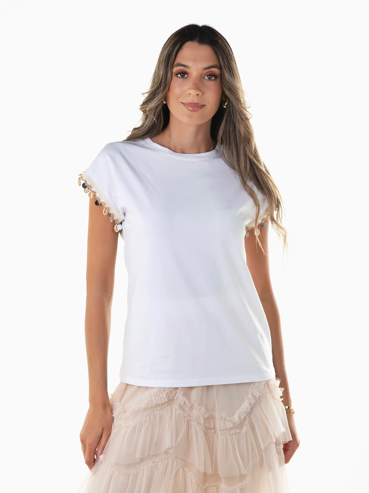 Início Mulher T-shirts T-shirt manga curta branca com aplicações