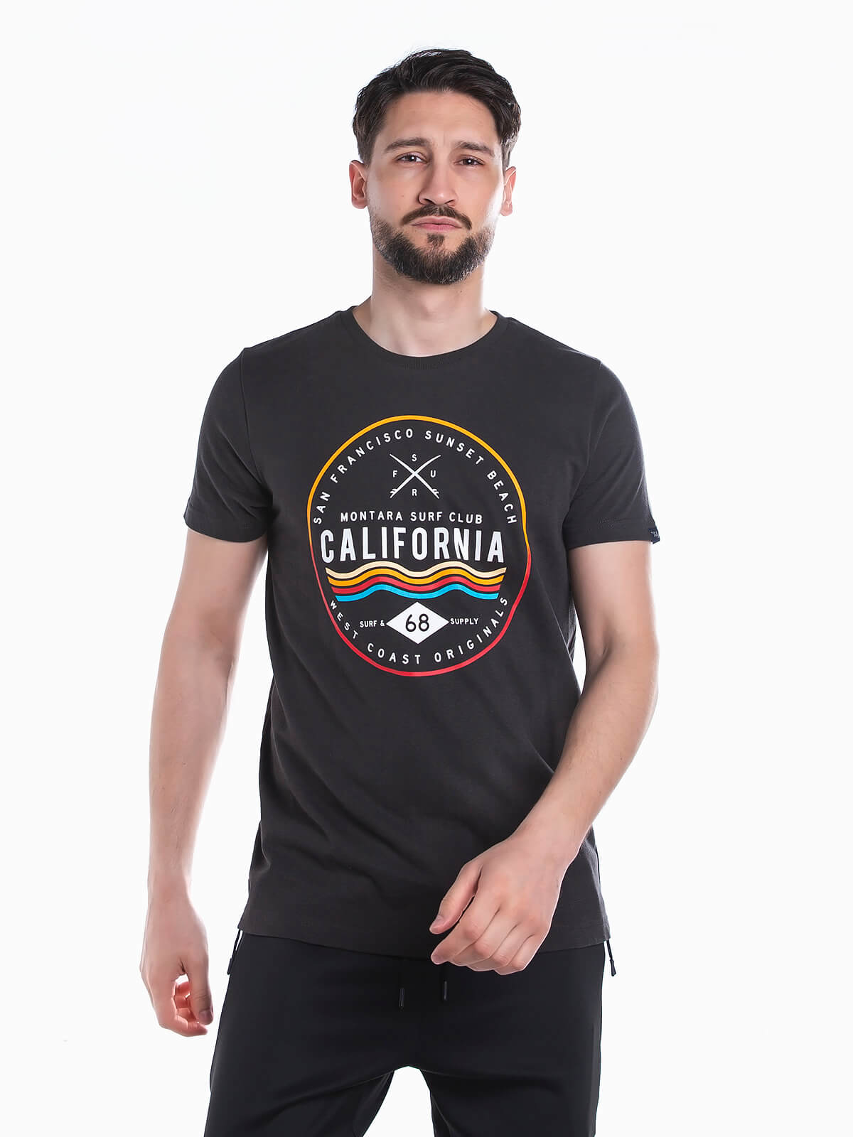 T-shirt de manga curta com estampado de círculo e ‘California’. T-shirt 100% algodão com gola redonda acaba em nervuras.