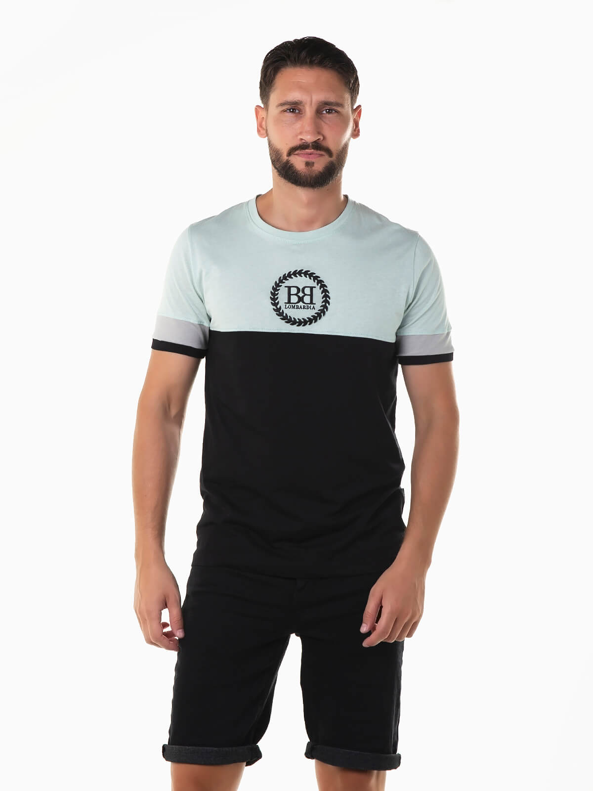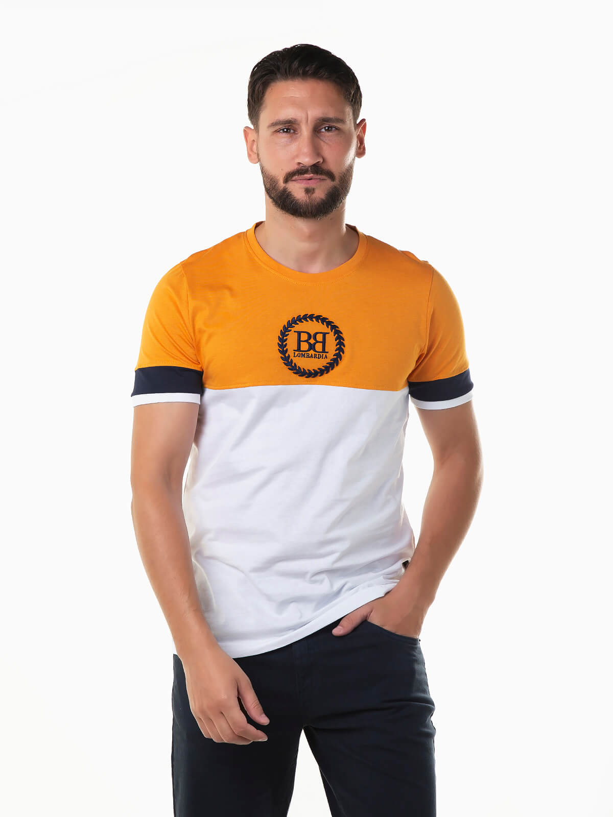 T-shirt manga curta com estampado color block e bordado no peito. Confeccionada em algodão 100% para maior conforto e durabilidade. Gola redonda.