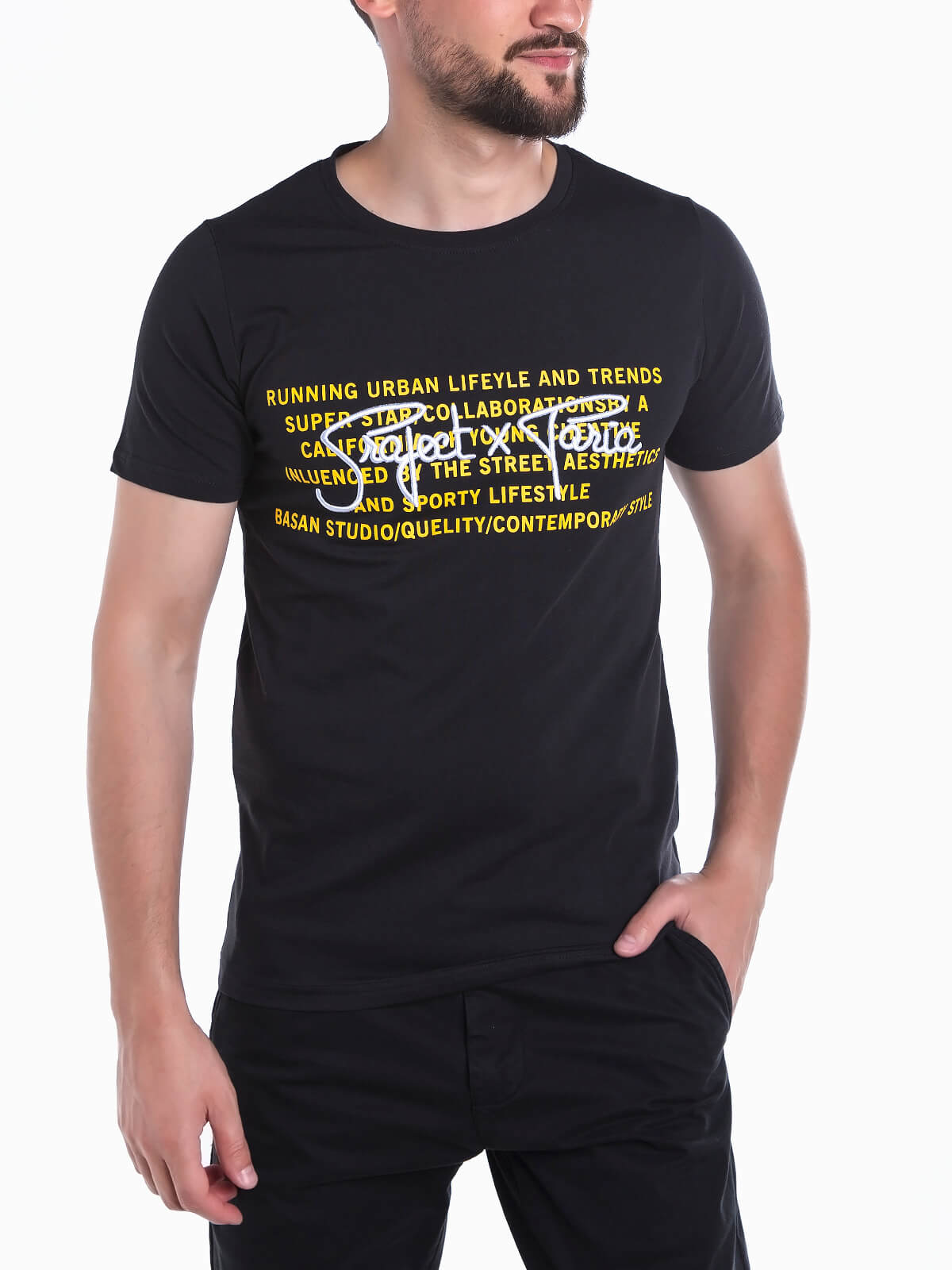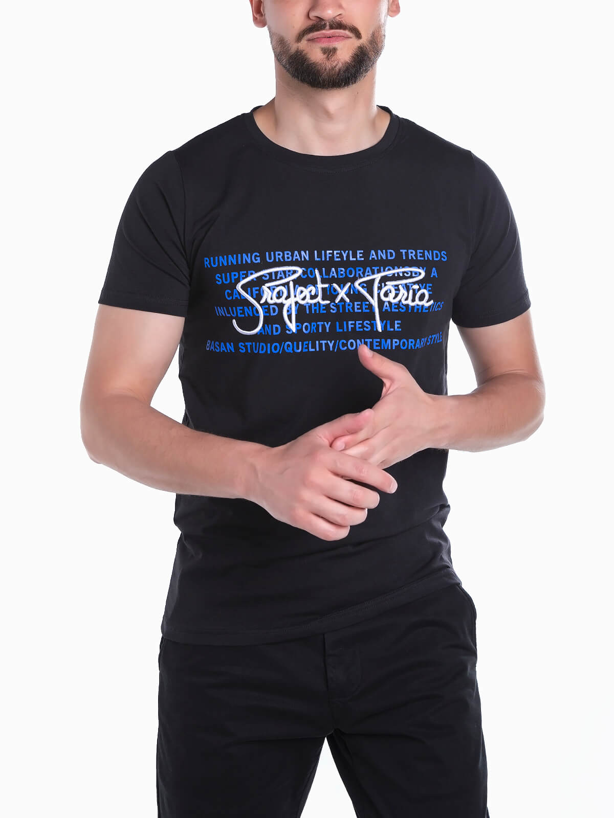 T-shirt de manga curta com bordado de letras no peito. T-shirt com decote redondo.