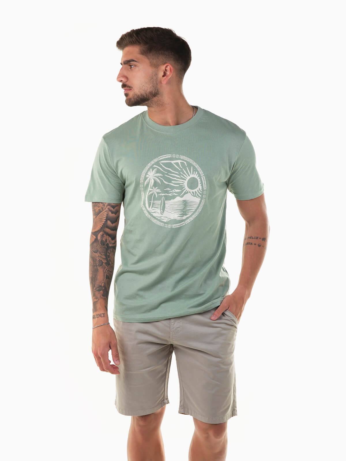 T-shirt de manga curta para homem com círculo estampado. T-shirt 100% algodão com gola redonda.