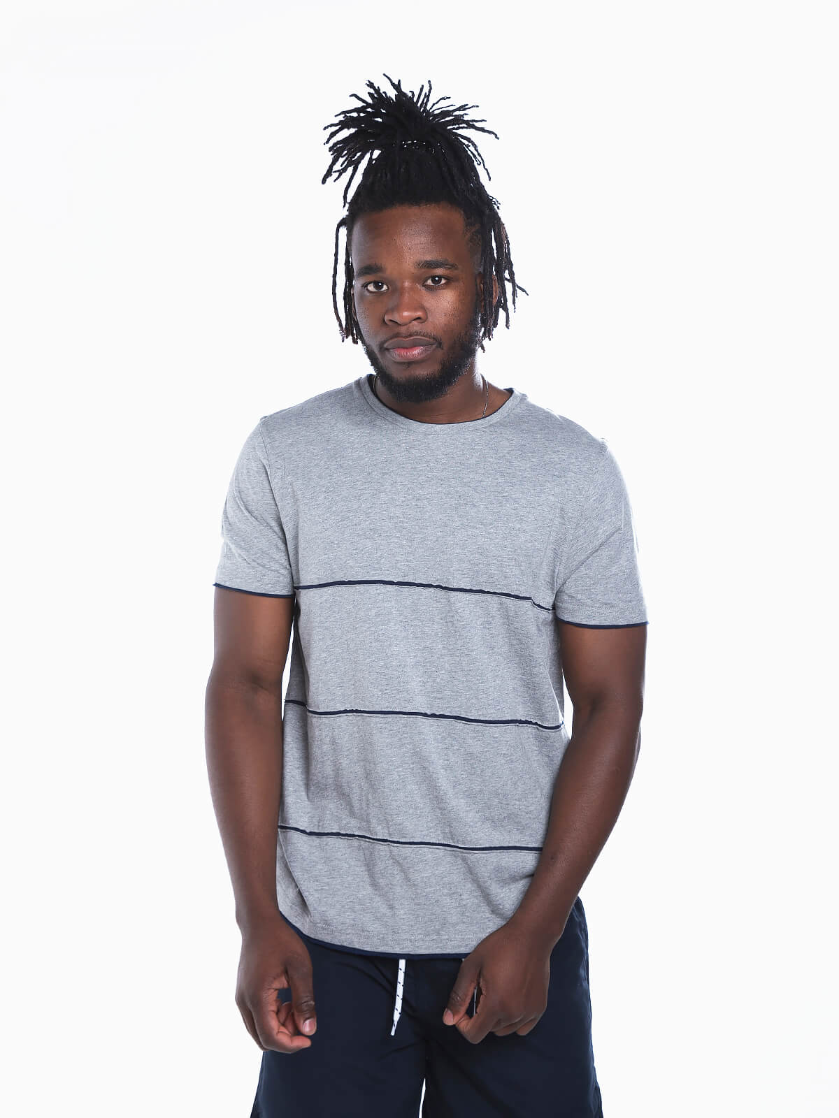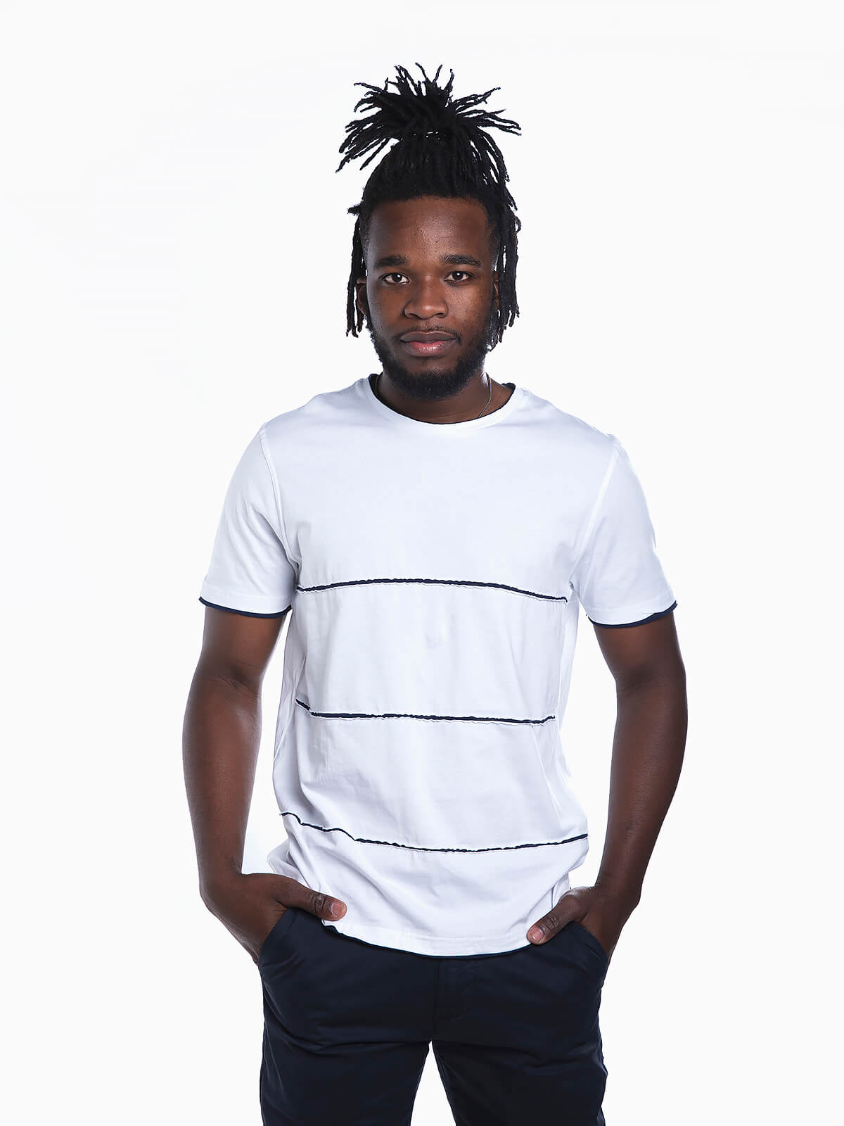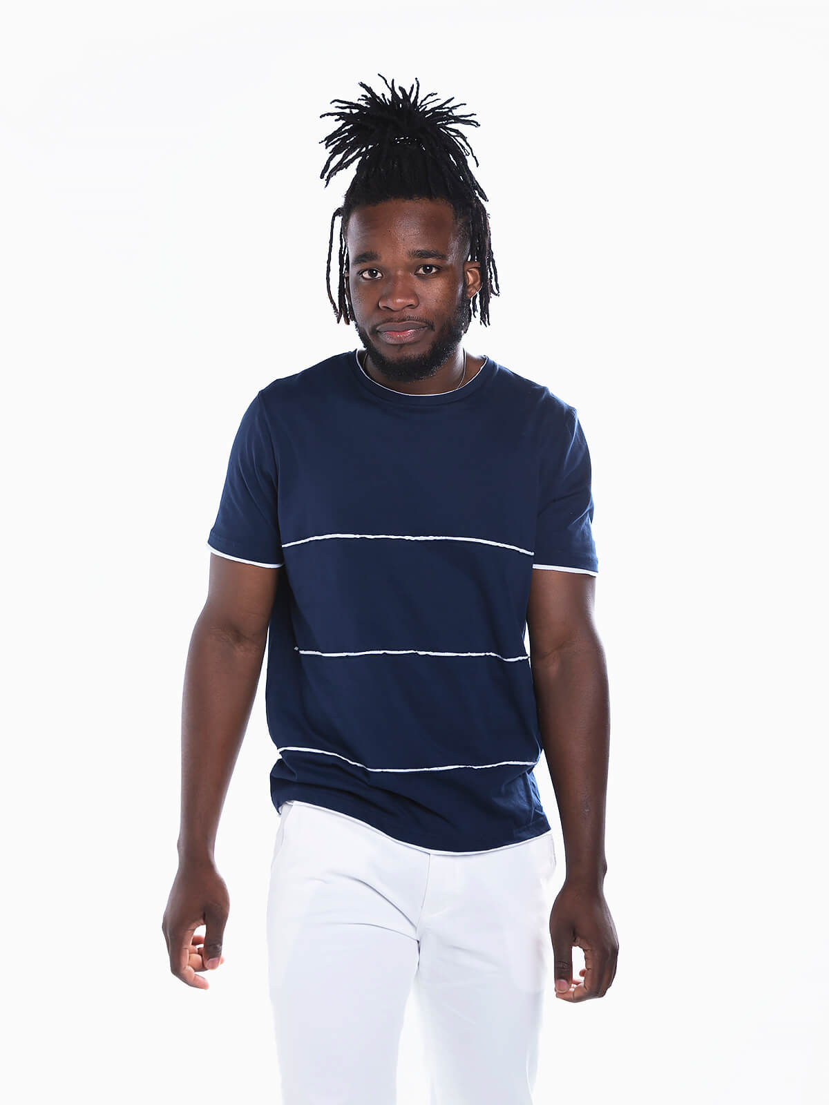 T-shirt de manga curta com encaixe de tiras de cor em constraste. T-shirt em algodão de gola redonda.