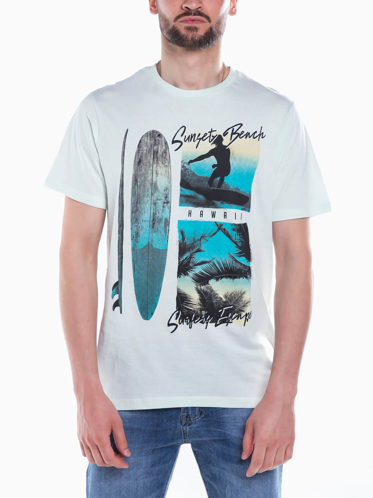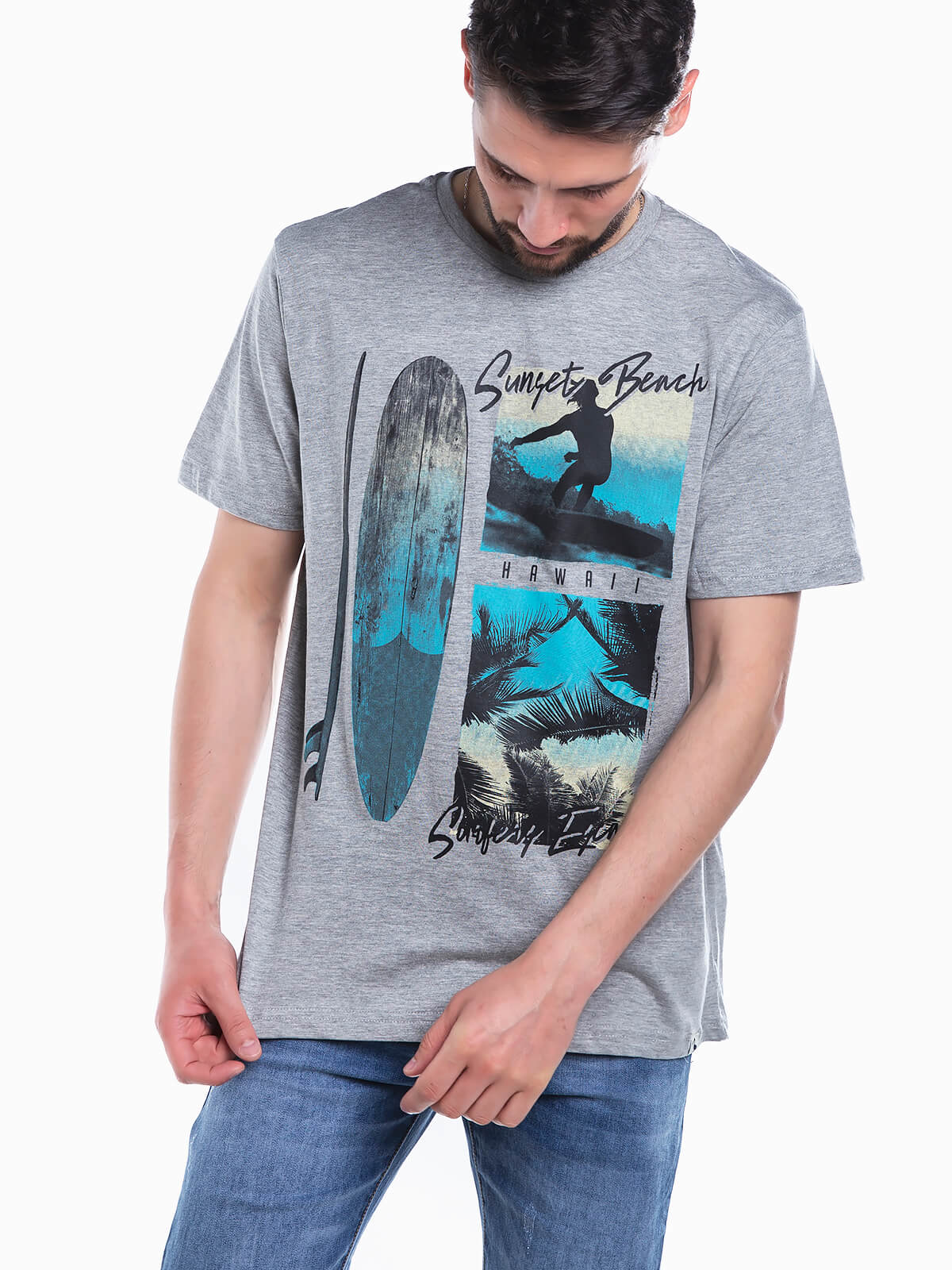 T-shirt de manga curta com motivos estampados. T-shirt de gola redonda.
