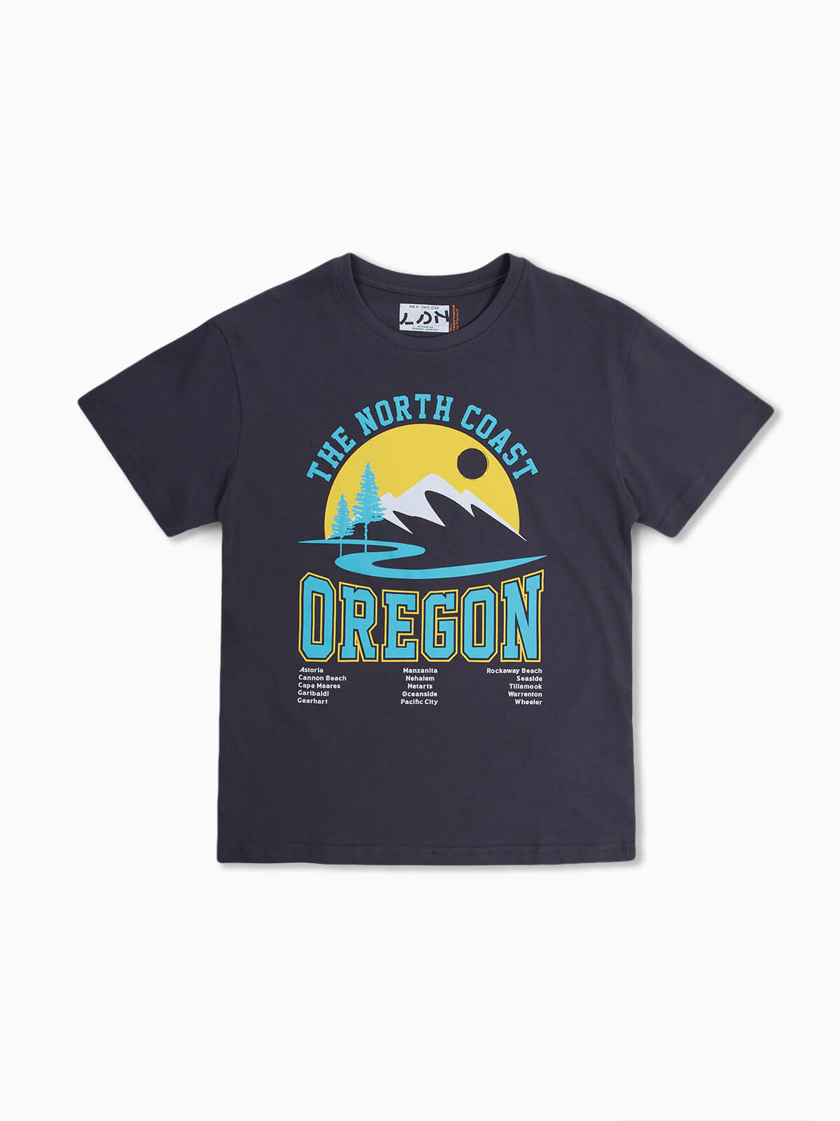T-shirt de manga curta com grafismo de montanha e mensagem estampada. T-shirt para menino com gola redonda.
