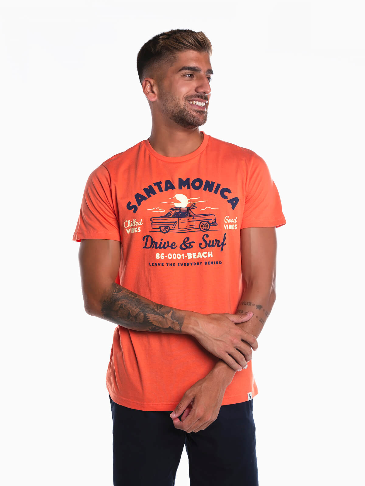 T-shirt de manga curta com ilustração ‘Santa Monica’ para homem. T-shirt em tecido 100% algodão com gola redonda.
