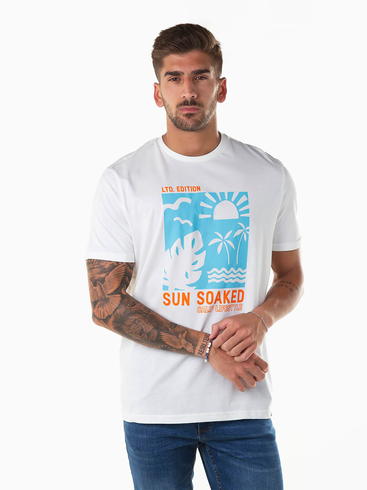 T-shirt confeccionada em tecido 100% algodão para maior conforto. T-shirt manga curta com imagem e letras estampadas no peito. Gola redonda.