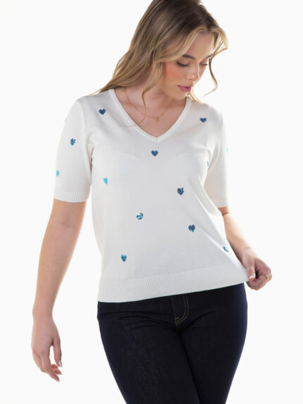 Camisola malha manga curta com corações 25,99 €