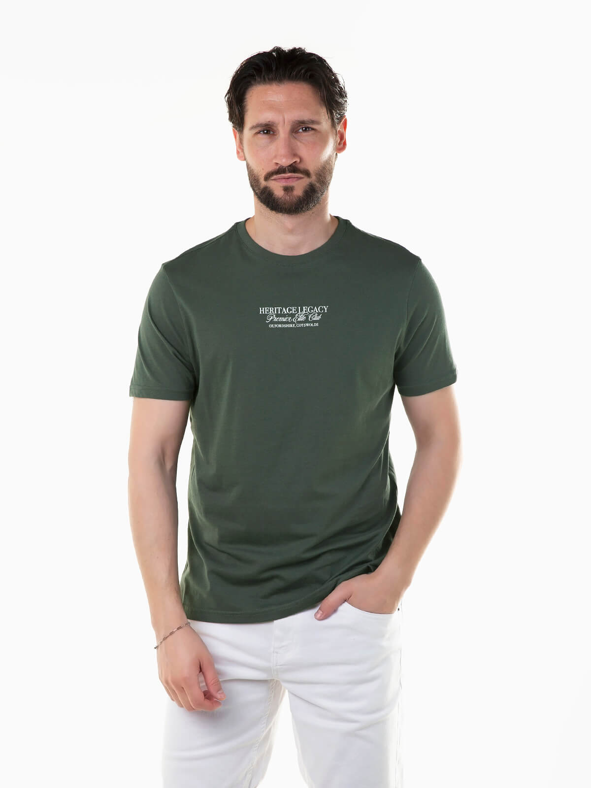 T-shirt de manga curta com letras estampadas no peito. T-shirt 100% algodão para homem com gola redonda.
