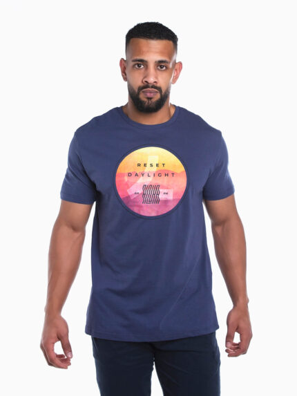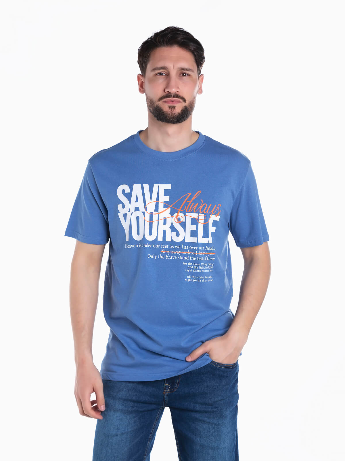 T-shirt de manga curta com mensagem estampada. T-shirt para homem em tecido 100% algodão com gola redonda.