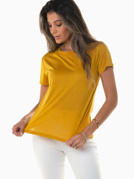 T-shirt de manga curta com encaixe de folhos nos ombros. T-shirt para senhora com decote redondo.