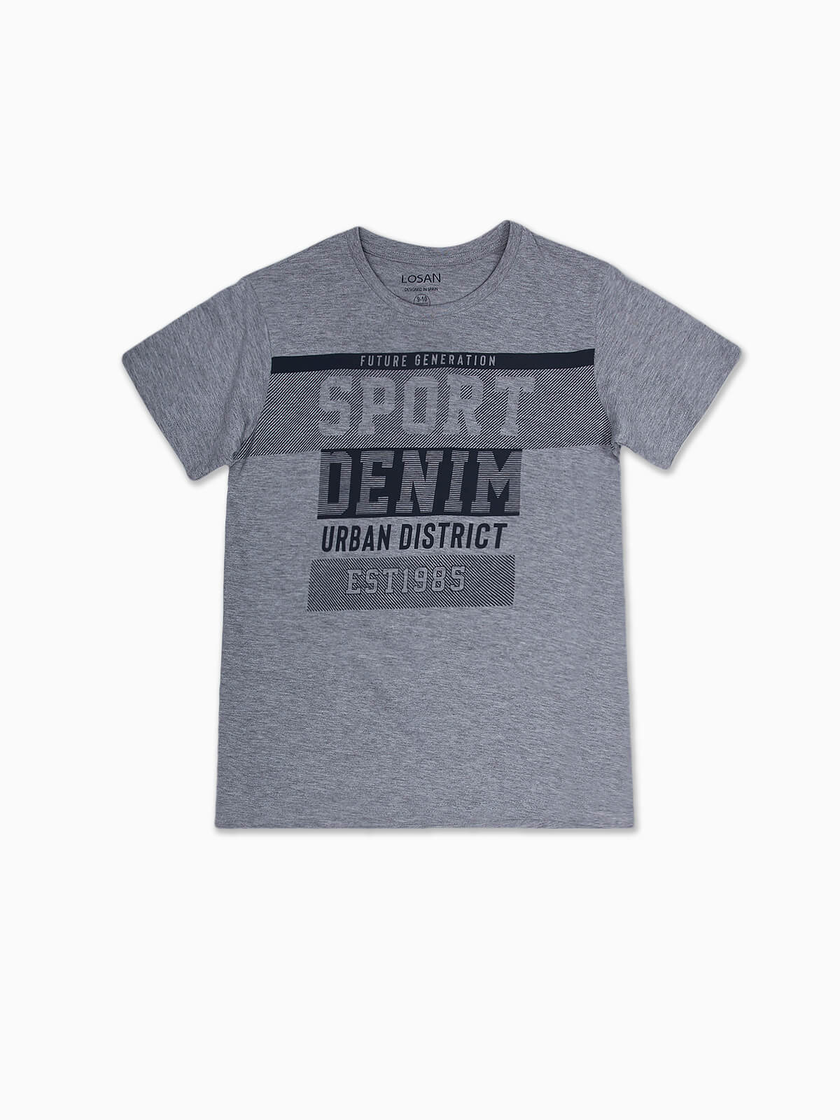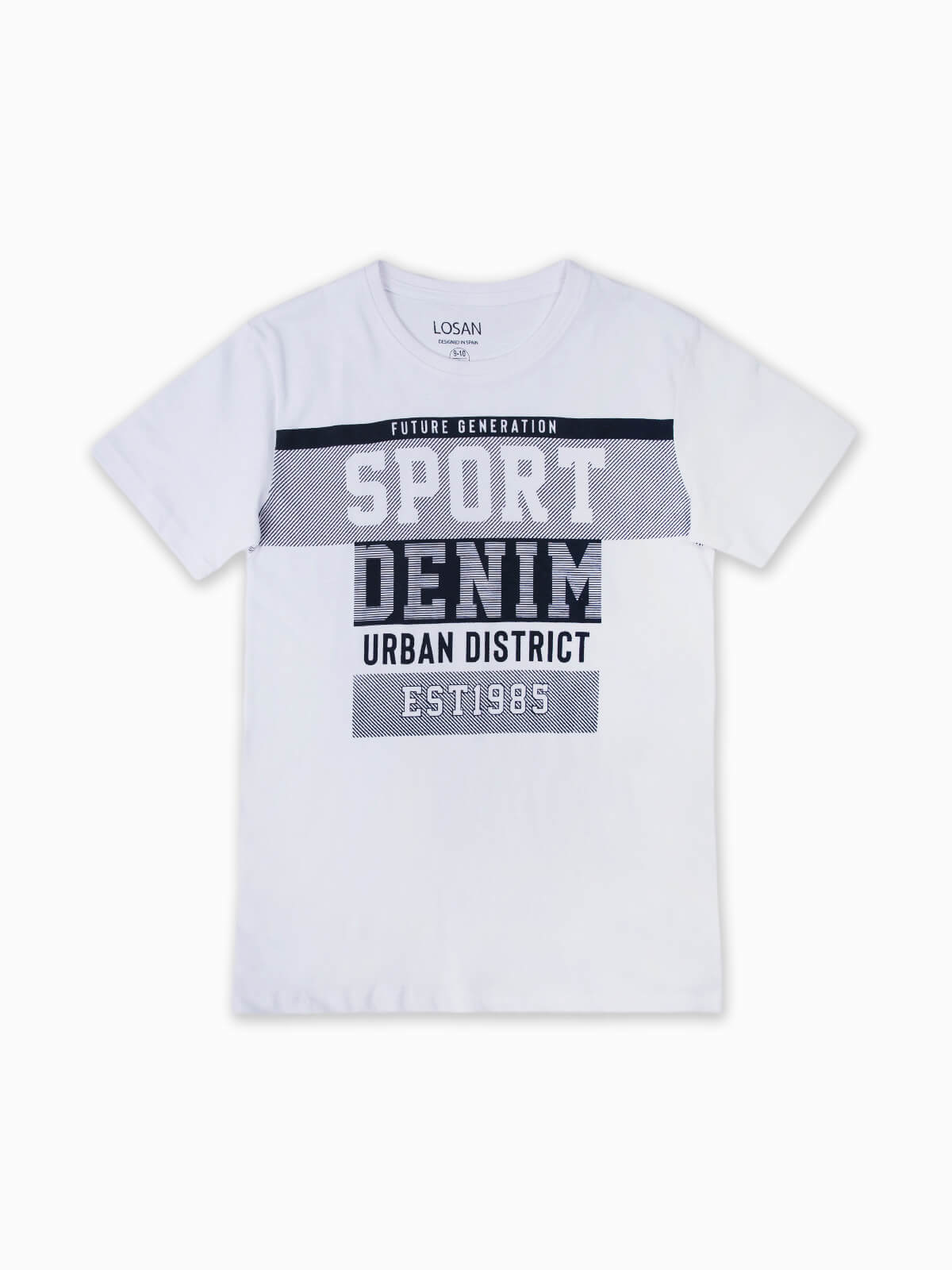 T-shirt de manga curta com motivos estampados. T-shirt para menino em 100% algodão de gola redonda.
