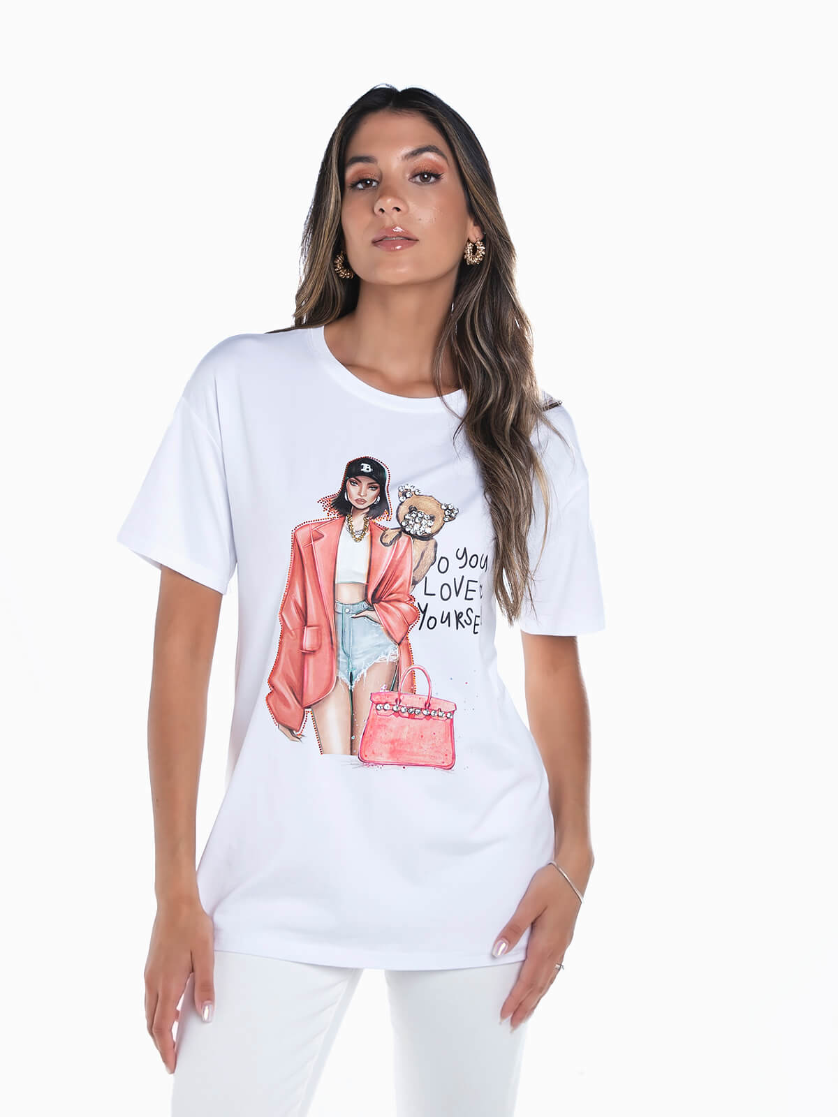 Início Mulher T-shirts T-shirt manga curta estampada com brilhantes