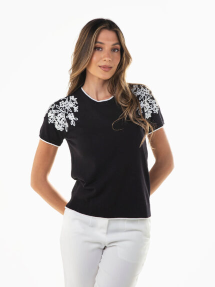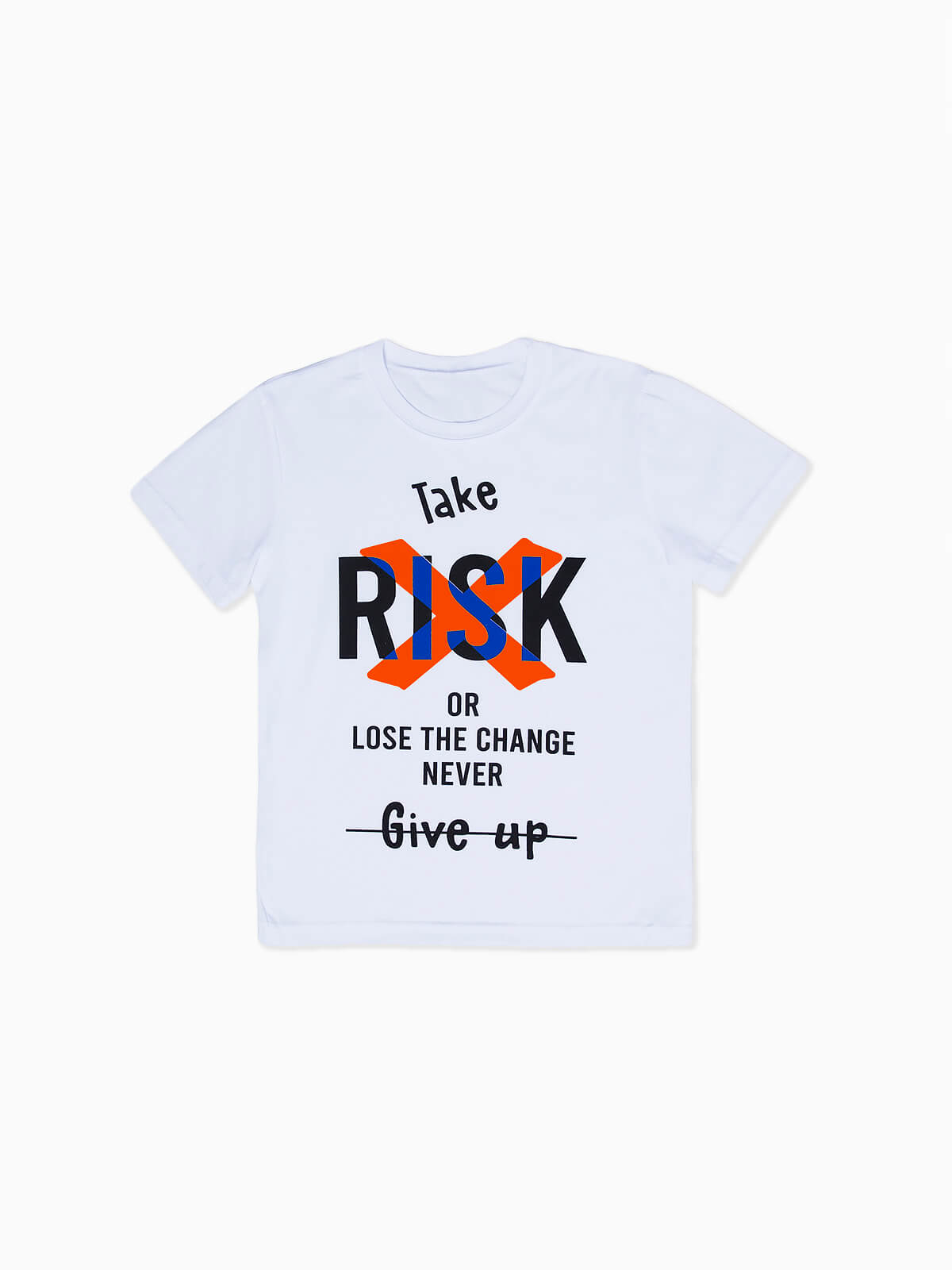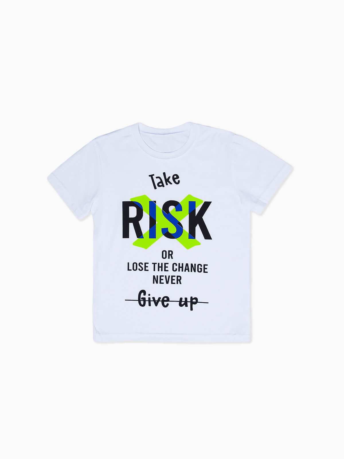T-shirt de manga curta com estampado de letras. T-shirt para bebé menino gola redonda e aperto de 2 botões.